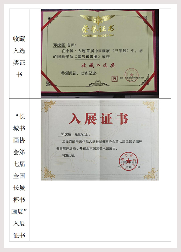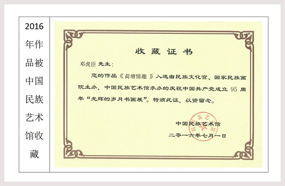 2016年作品入选长城书画协会第七届全国长城杯书画展评活动;