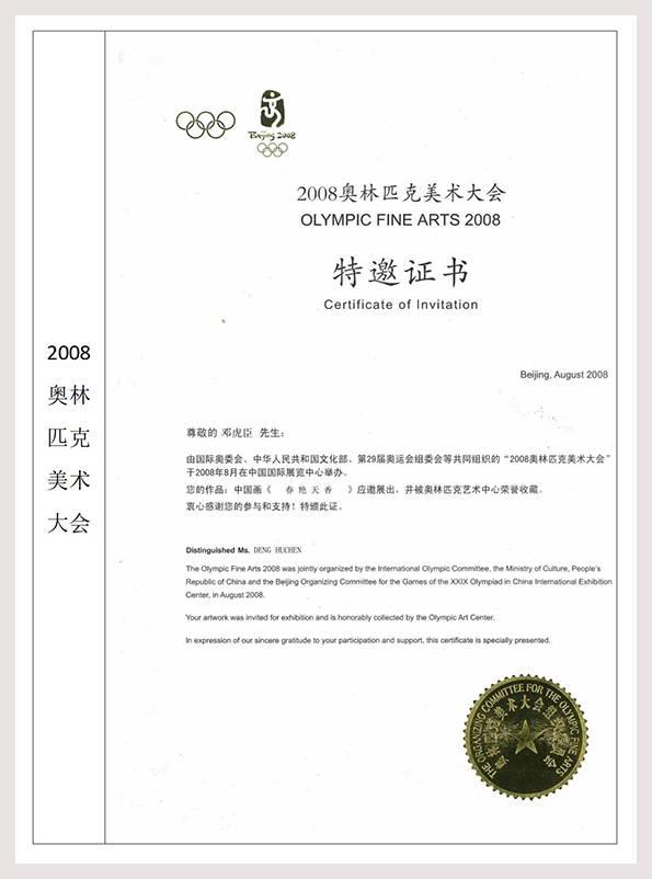 展览与媒体报道 作品多次入选国内外重要展览,并获奖和被收藏,曾在上海、北京中国美术馆、荷兰、菲律宾等地举办个展。作品还多次应邀赴美国、德国、菲律宾、英国、日本、加拿大、韩国、泰国、新加坡、法国、以色列、俄罗斯、澳大利亚等数十个国家及中国港、台地区展出。海内外数百家报刊专集,中央电视台、电视专题片等均做过艺术介绍。出版有《艺术家书画》(人民美术出版社)、《中国当代花鸟画家——邓虎臣》(西冷印社出版社)等多种著作。