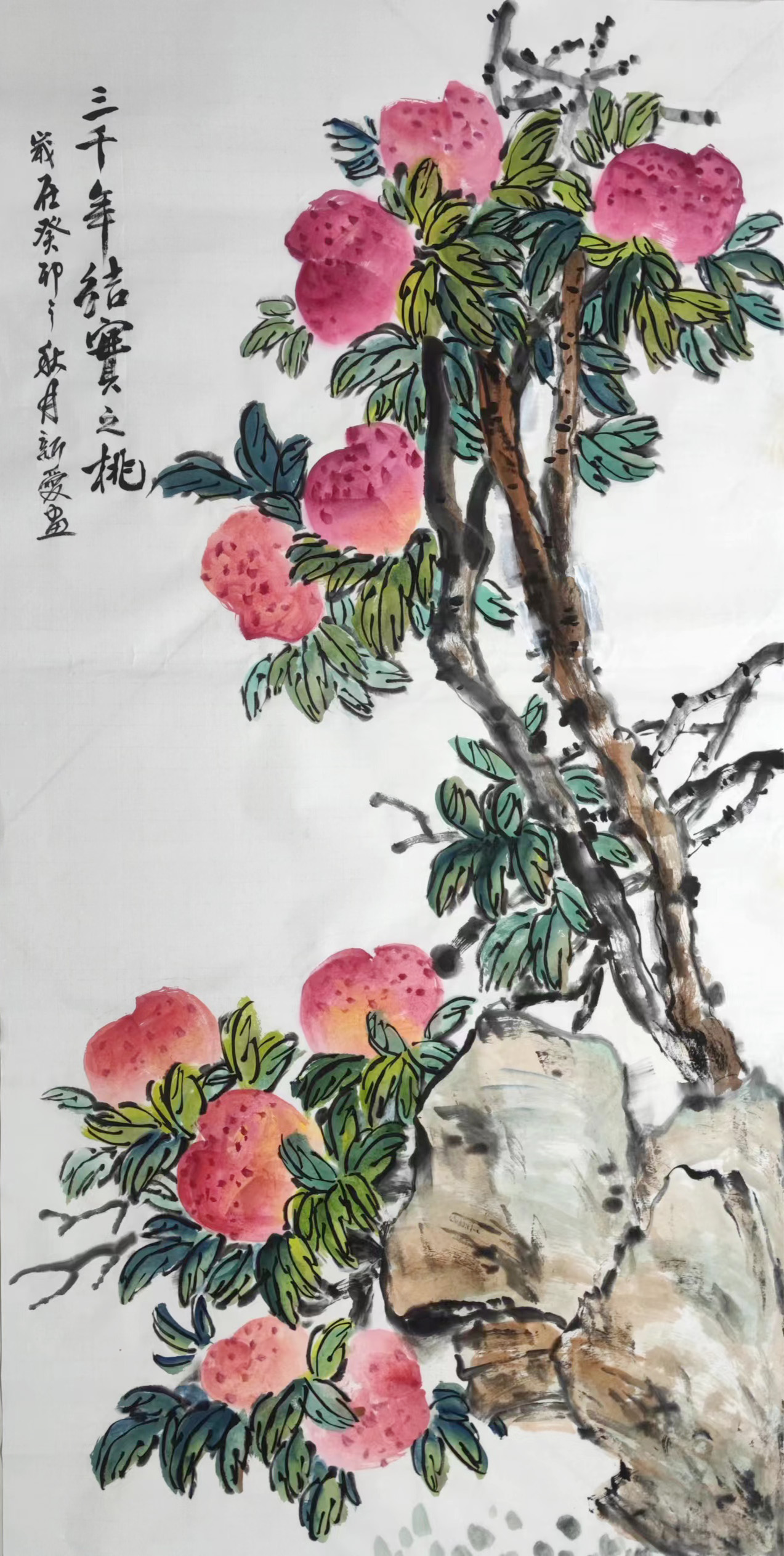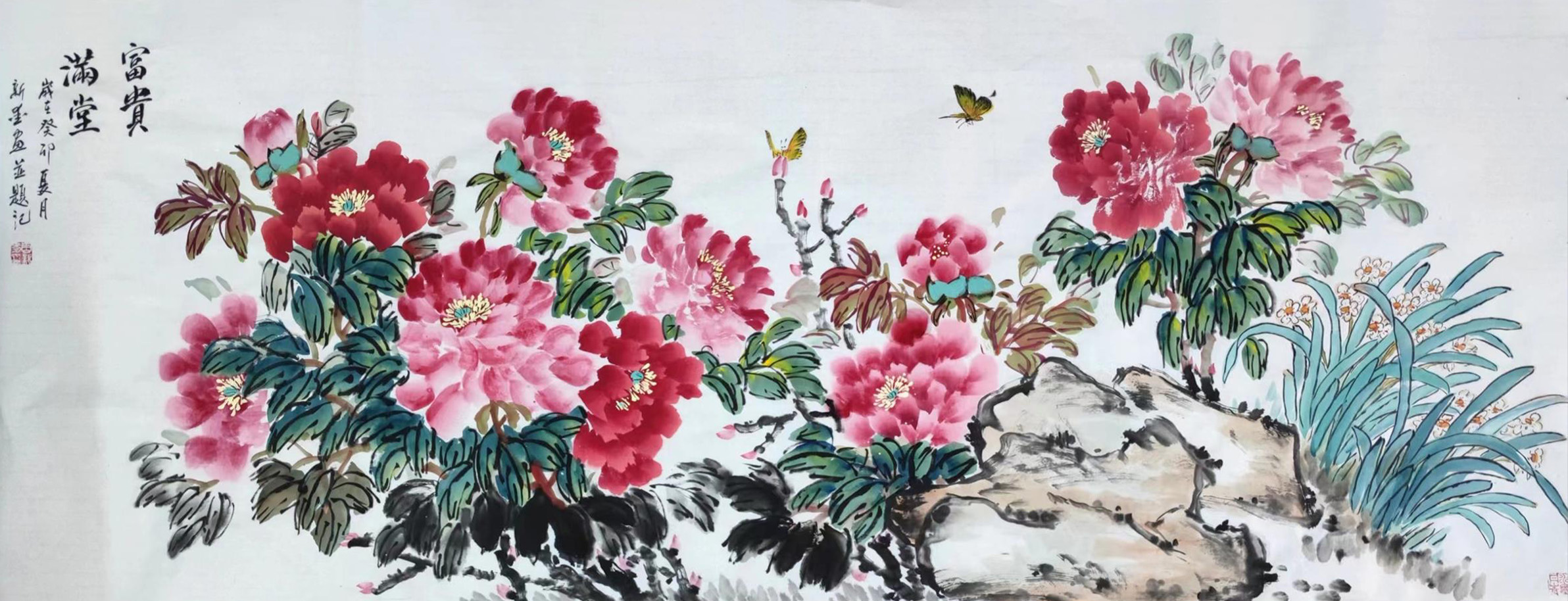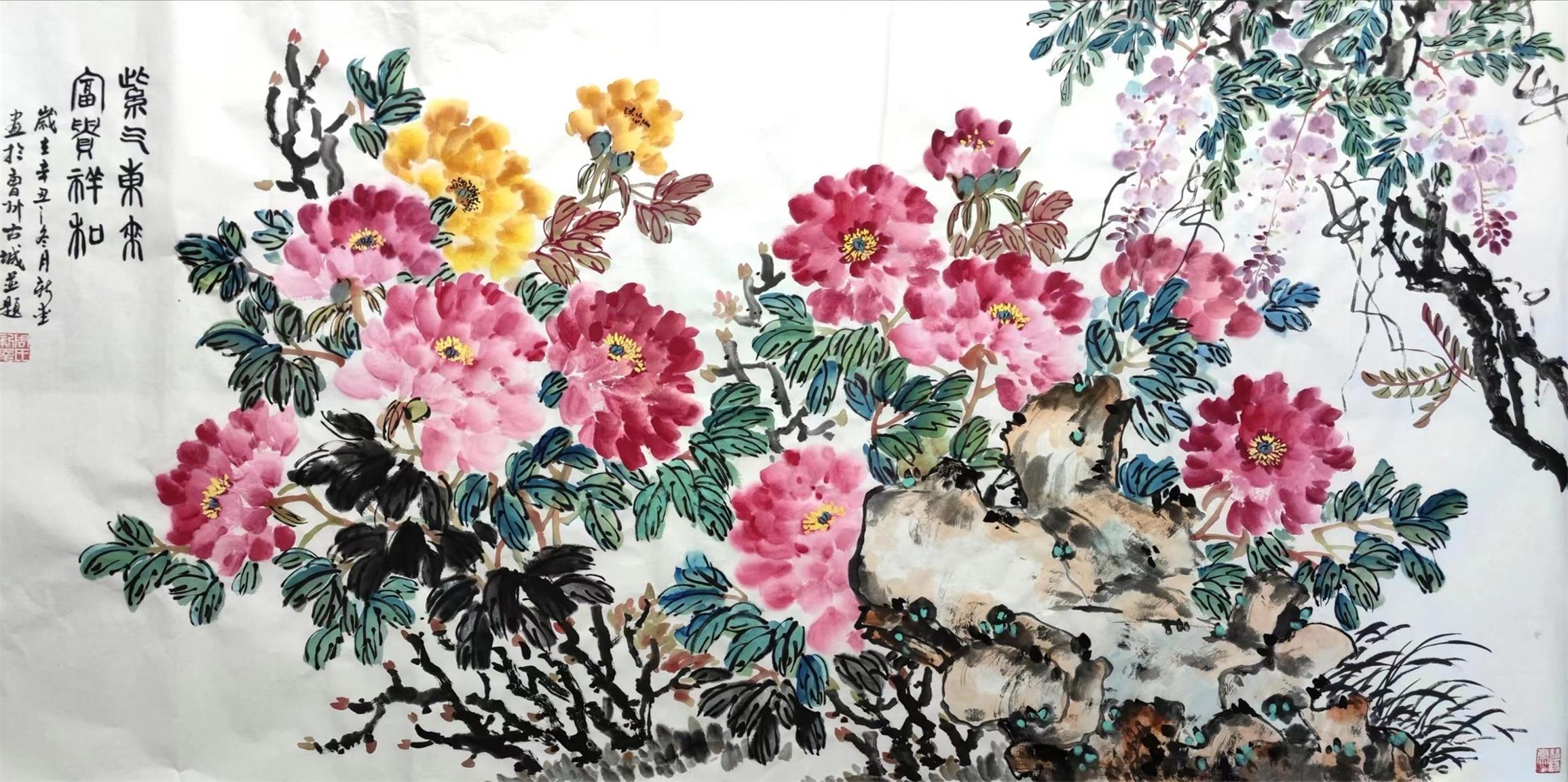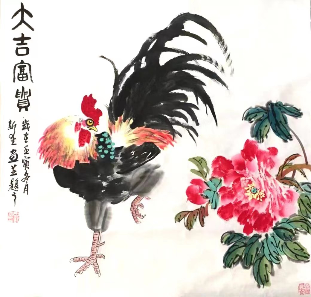 自幼对艺术颇有天赋,对丹青更是情有独钟,由于生活在花城菏泽,牡丹之乡,所以擅长花鸟独喜牡丹。 牡丹花是雍容华贵之花,红花绿叶,漂亮大气,一不小心就亦画俗,周老师摆脱了牡丹画中极易犯的俗气匠气闺阁气,形成了自己清新脱俗雅俗共赏的鲜明风格。牡丹花头神态各异,漂亮洒脱,无论是鸿篇巨制还是扇面小笺,都给人一种酣畅淋漓,气脉贯畅,意境悠远的感觉。画面内容丰富,手段方法灵活,提按转折顺锋逆锋方法多变,自然灵动。绘画时以书法用笔,线条自然流畅,遒劲有力。多年来秉承着天道酬勤的理念,不忘初心,用一种滴水穿石的精神砥砺前行