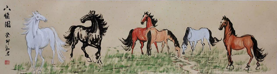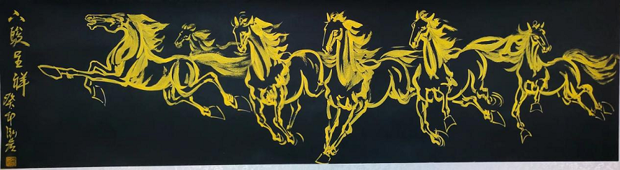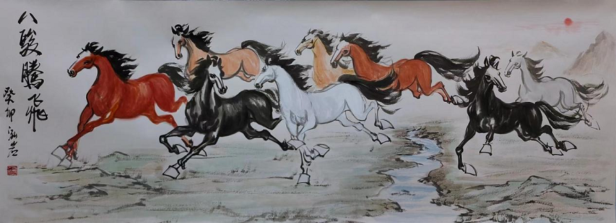 《八骏图》2014年马年央视文化频道春节晚会现场创作作品;2016年受邀北京嘉德艺术品拍卖86万成交;