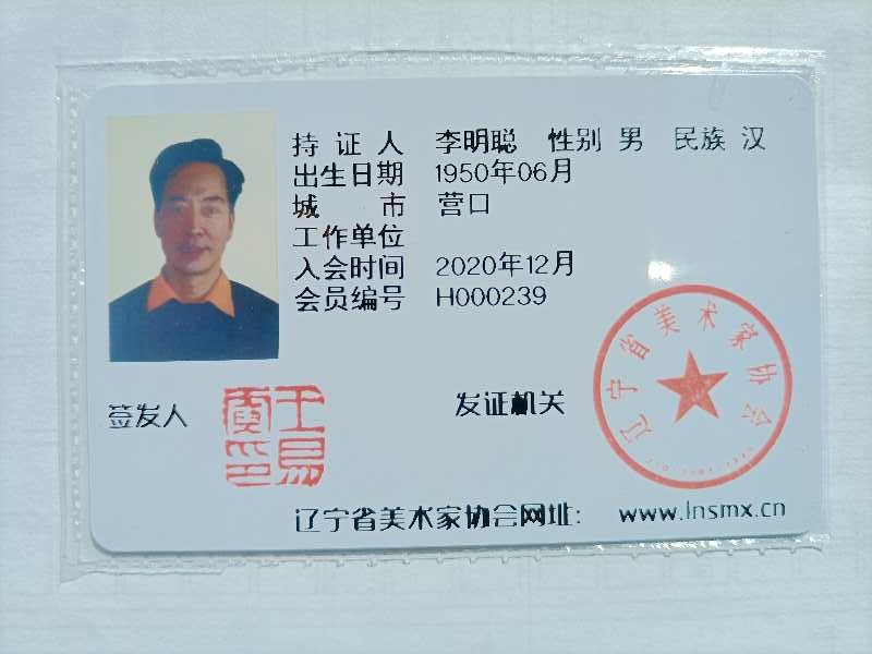 李明聪,国家一级美术师、中国书画家协会会员、中国美术家协会会员、 辽宁省美术家协会会员,中国博雅书画院签约画家 中国书画研究会副会长