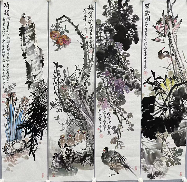 花鸟四条屏 34✖️138cm