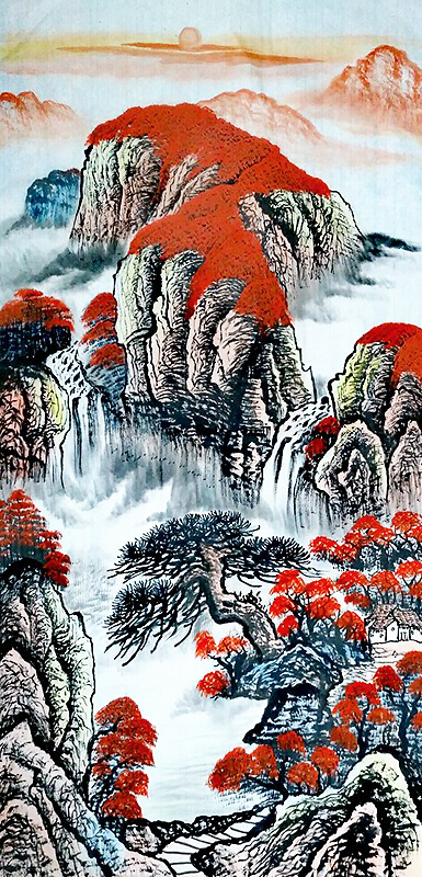 唐先生书法写得功夫卓然,丹青修养也富有成绩。山水写意万山红遍,不但有大唐彩绘的盎然,也有师法可染的惟妙惟肖!色彩流丽,浑厚华滋,合成大唐盛世的风范与当代文化复兴的风骨,挂饰于大厅必定是蓬荜生辉的上上佳作,笔墨当随代这就是经典示例!