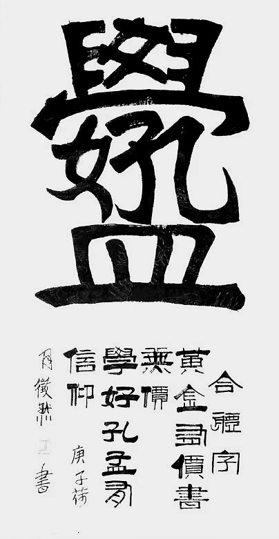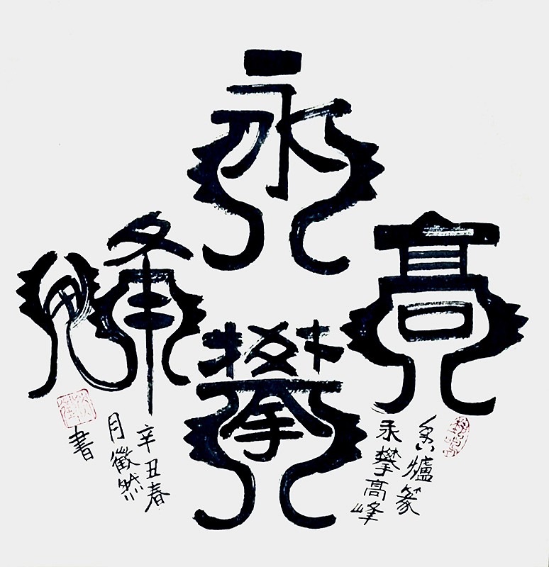 先生习成书法,广师碑帖,功有大成。书法磨砺,有逐本溯源的执着,写金文饱满圆厚,有毛公鼎的朴茂浑然,也有散氏盘的高低错落。笔法拟刀迹,顿挫有道,起落守法,把先祖文字的精华与精彩表现得无以复加。所以其金文书成,极有弘钟大鼎的文化震撼力。学书不学毛公鼎,犹如儒生不读尚书文!唐克正是书坛雄才,亦是读透尚书的儒家贤才!又独能写成香炉篆,奇有妙观!
