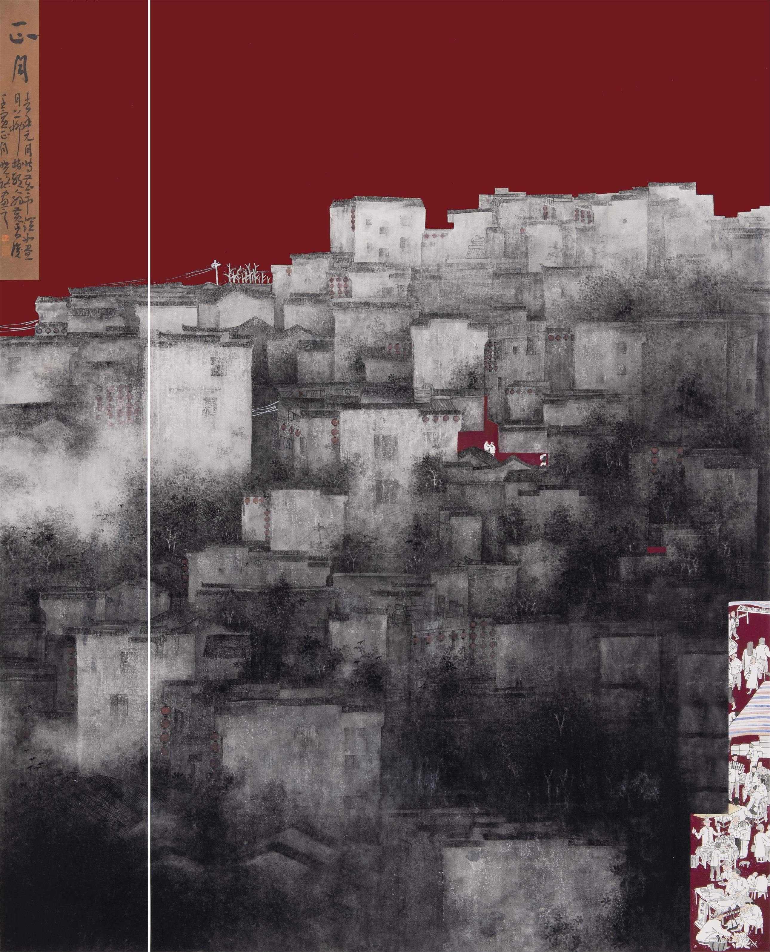 2018.3作品【蒙山人家】入选多彩2018全国女画家作品展