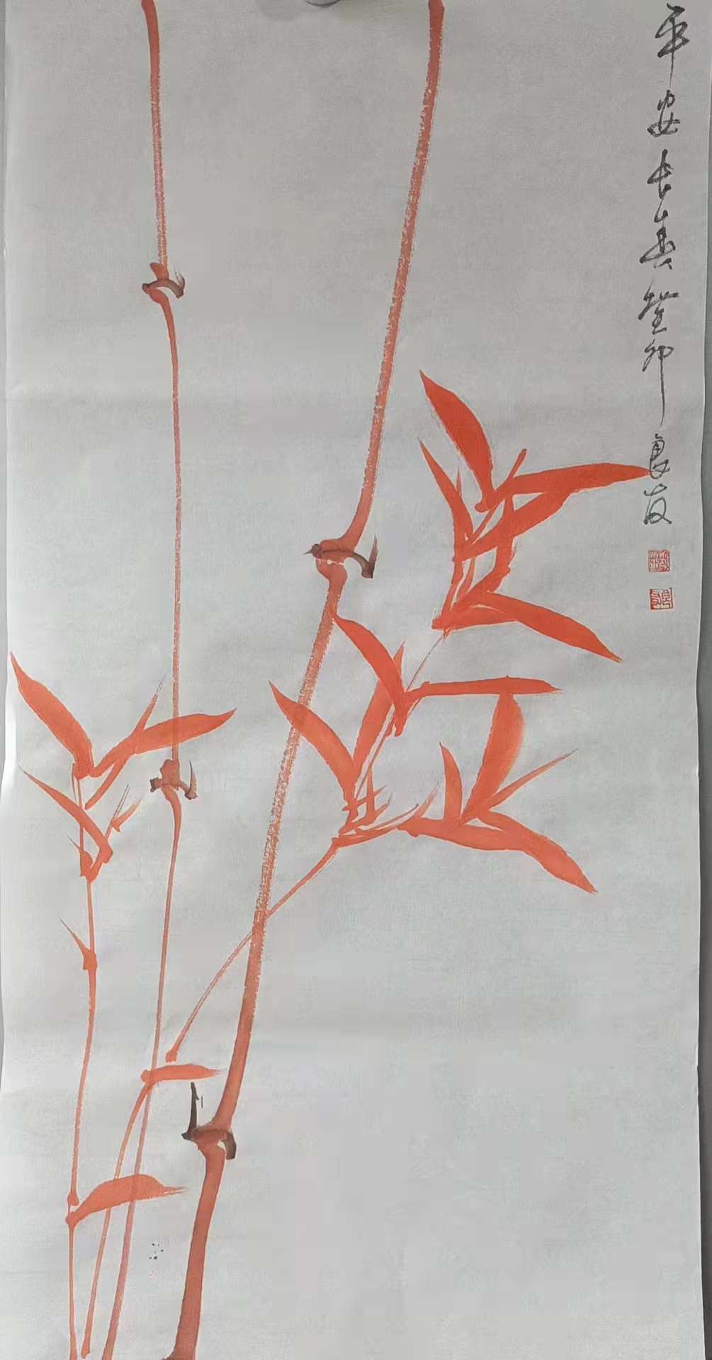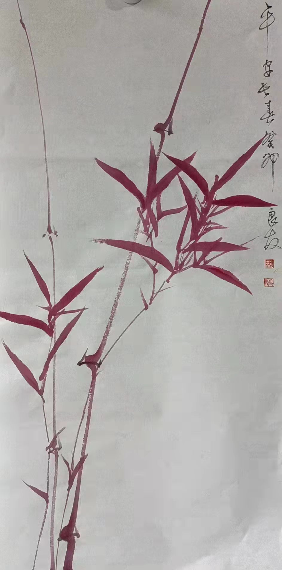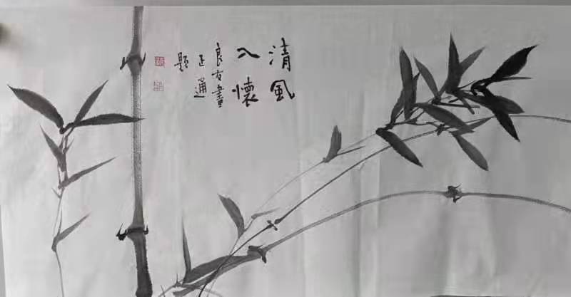 范良友先生常作风竹,面对狂风而不畏惧,不骄不躁,在大自然中虚心的自身自长。