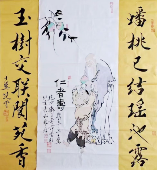 的成绩,蝉联中国“最贵在世国宝艺术家”的头衔。其中 1997 年所作《八仙图镜心》更是