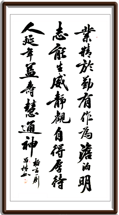 王昌林:男,1960年生,西安市人,其书法功底绝对深厚,这也许就是文化的感召力,其笔下的行书洒脱飘逸,在用笔上变化多端,能够将唐楷的笔意融入其中,写出了一番新气象,点画安排非常紧凑,而且点画之间的关系处理得十分融洽和谐,体现出较高的书法造诣,线条流畅自然,而且有明显的粗细对比。