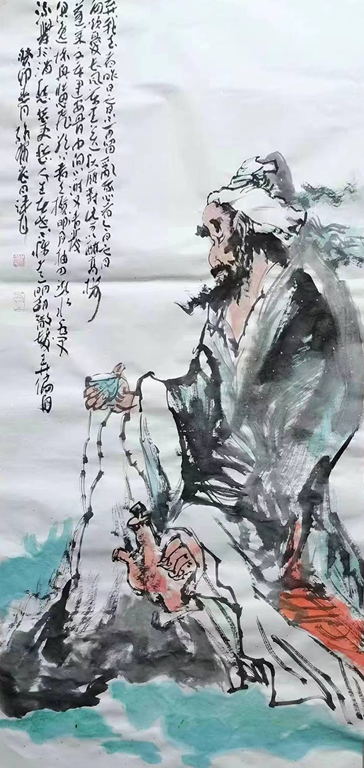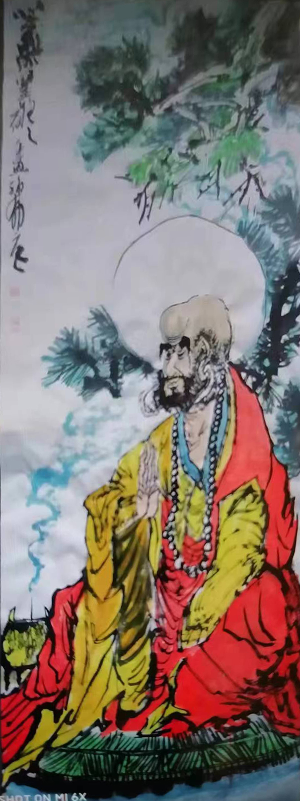 书画印皆能,尤精写意弥勒罗汉、小楷写经金镂衣,