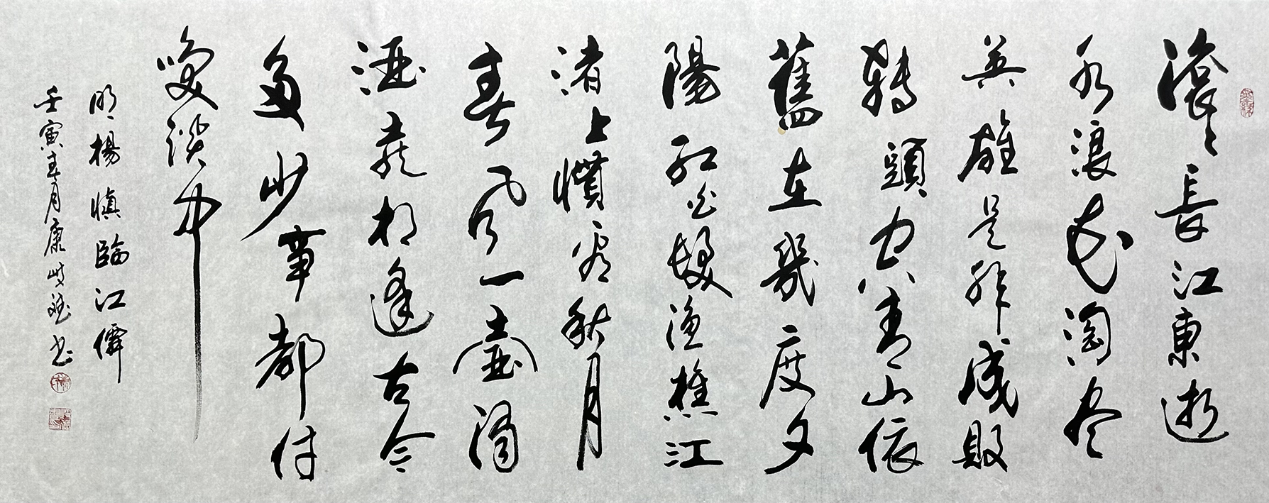 康岐斌先生受邀其现场创作”临江仙.滚滚长江东逝水”. 其作品还被苏丹、古巴、以色列、卡塔尔王室贵族及诸多政要亲眷收藏。著名企业家李嘉诚、何鸿燊、及著名演员葛优、李雪健等诸多艺术家收藏其作品。市场作品润格为21000元平方尺。