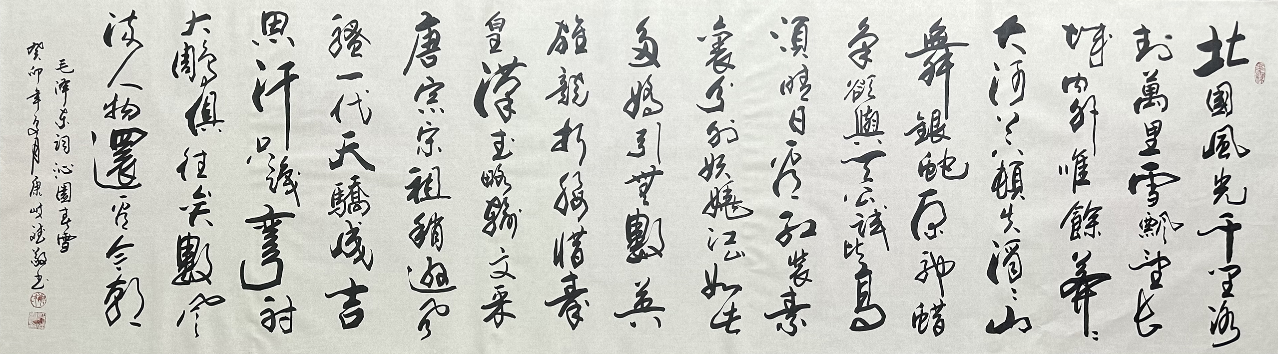 2019年康岐斌老师书法作品《沁园春.雪》参加全国第十八届“庐山杯”书画大赛荣获金奖,并在2021年拍卖28.5万。