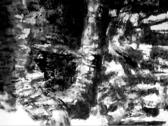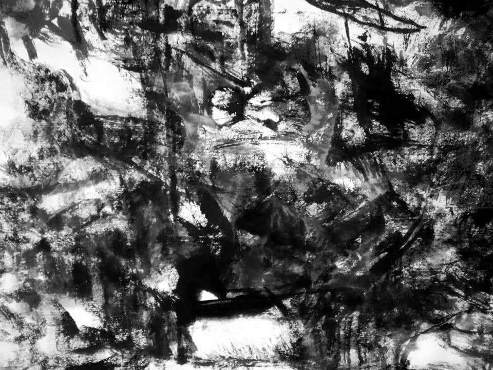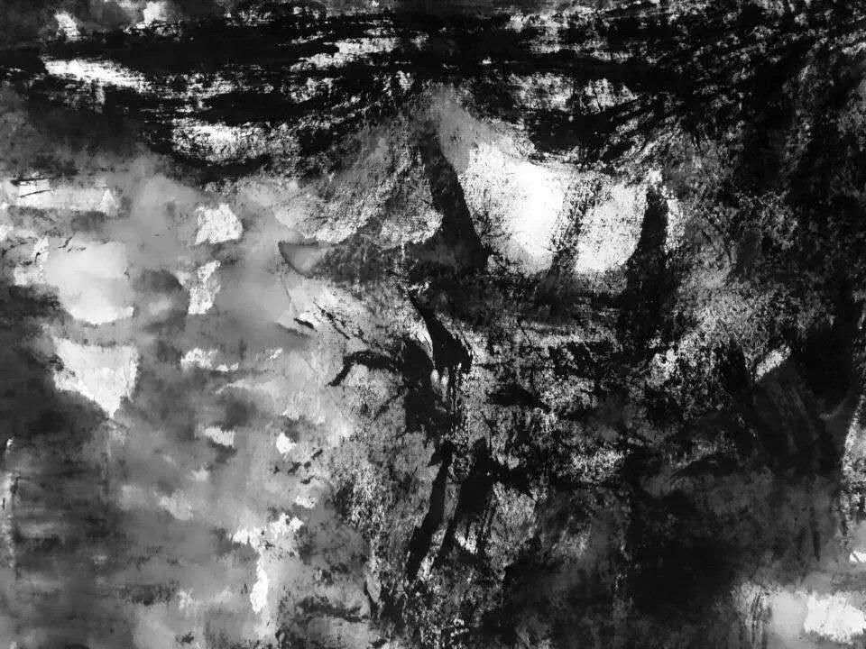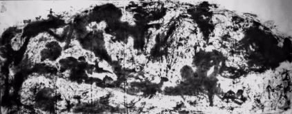 笔者的要求:在画画时,水墨灵妙的自然流动,瞬间什么都不是,慢慢在干燥的过程中神奇地变化形成了是像非像的山石结构,也显现出了作者对水墨研究的把握能力和功夫!画出自己心中的笔墨语言。