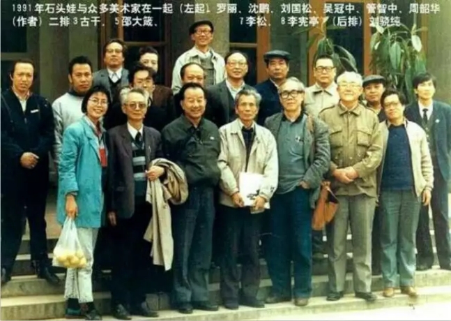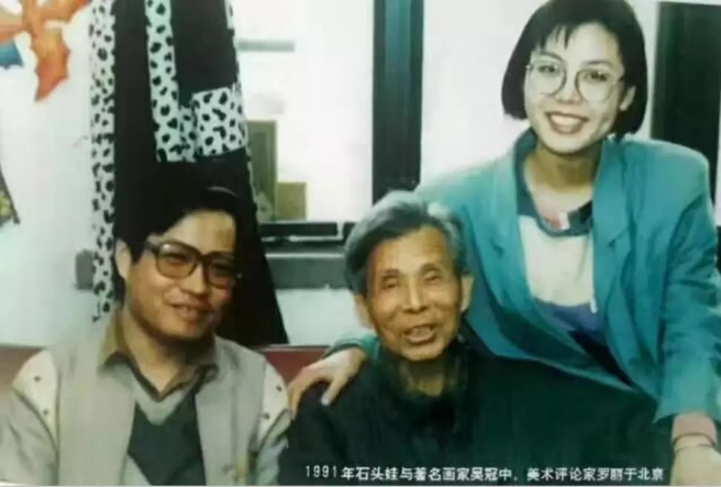 1991年石头娃与著名画家吴冠中,美术评论家罗丽于北京