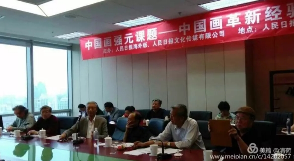 2017年石头娃与众多美术家在《人民日报》“强元十人展”研讨会: