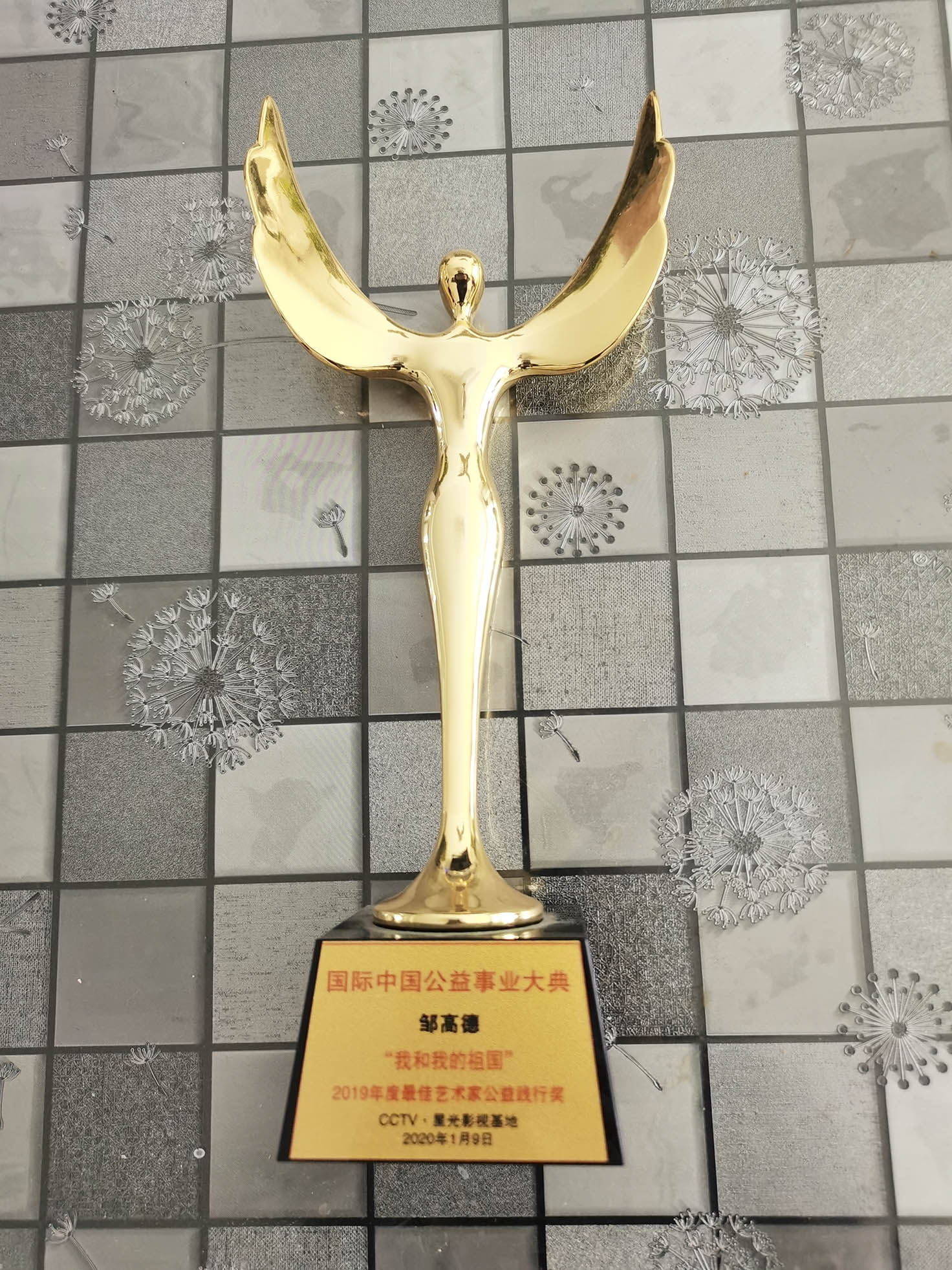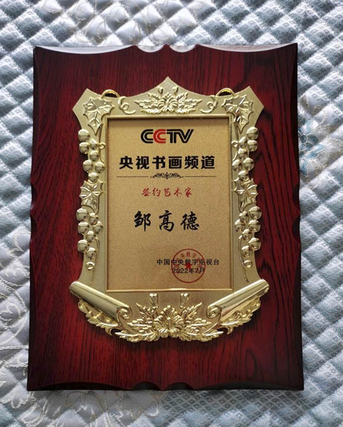 2020年1月8日,受中央广播电视台邀请,在演播厅参加全国108名书画名家笔会,接受央视记者采访,荣获“2019年度最佳艺术家公益践行奖”奖杯。