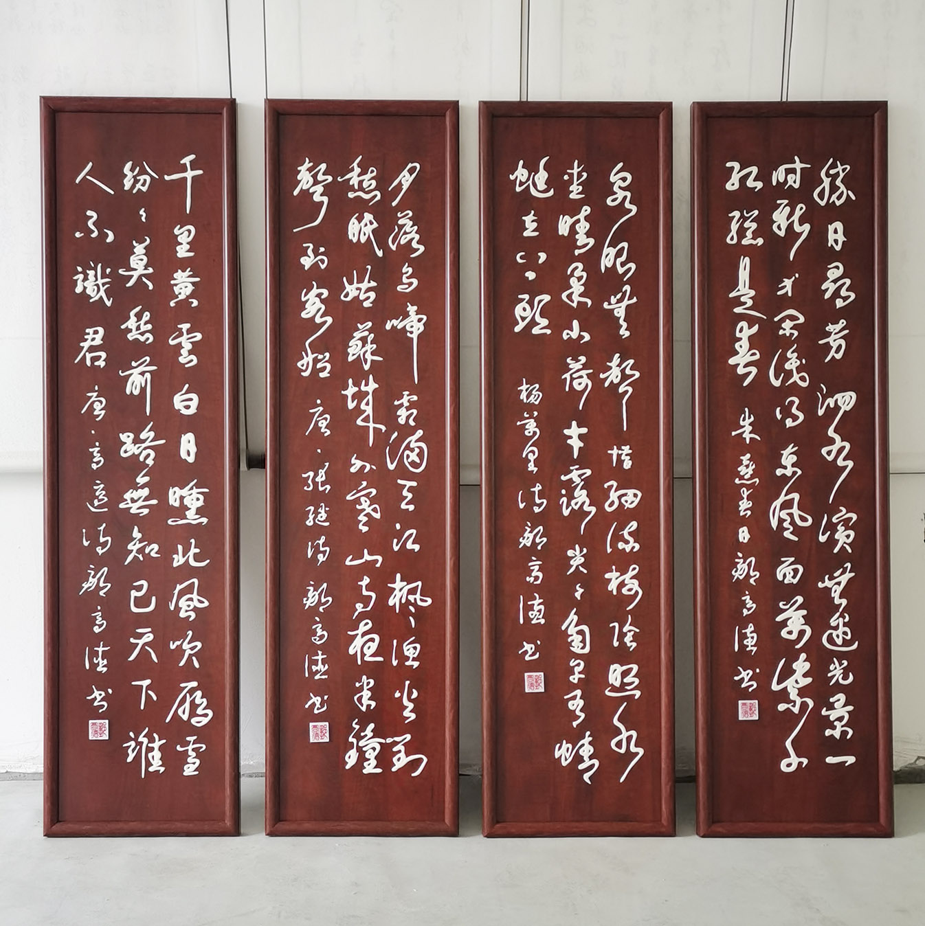 邹高德篆、隶、楷、行草五体皆善,尤其富予创新精神,他研制出代替墨汁的书法膏料,凝而不滞,流而不散,在板材上写出美不胜收的各种立体书法作品。