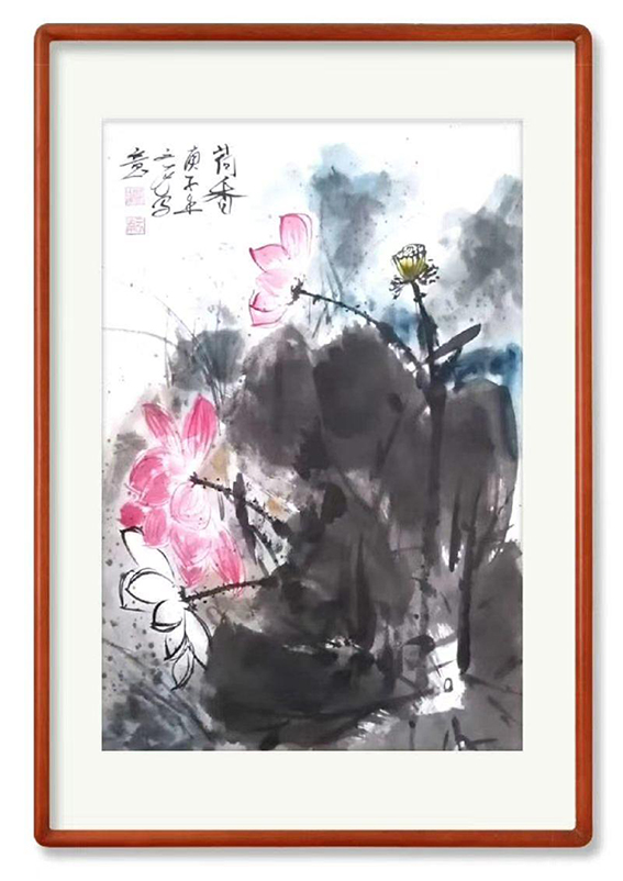 我喜欢画国画,我最爱画竹子的细细的叶,疏疏的节,最爱她顶天立地,胸怀坦荡的精神;我也爱画池塘中冰清玉洁的荷叶,它出淤泥而不染,濯清涟而不妖精神也深深感到了我;我还爱画展翅翱翔的苍鹰,学习它面对崎岖和坎坷所表现的顽强不屈,奋勇向前的精神……国画的创作拥有无限瞎想的空间,国画的内涵是一种修养。这让我深深地爱上国画,尤其是写意画。国画本身不仅带给人们身心无限的愉悦,关键在于通过国画的意境,感受它给我们带来心灵的震撼……国画家要经过长时间,几十年的磨练,达到炉火纯青的境界,才能把自己的心灵感悟和大自然的景物融为一体,這就是神与物化。