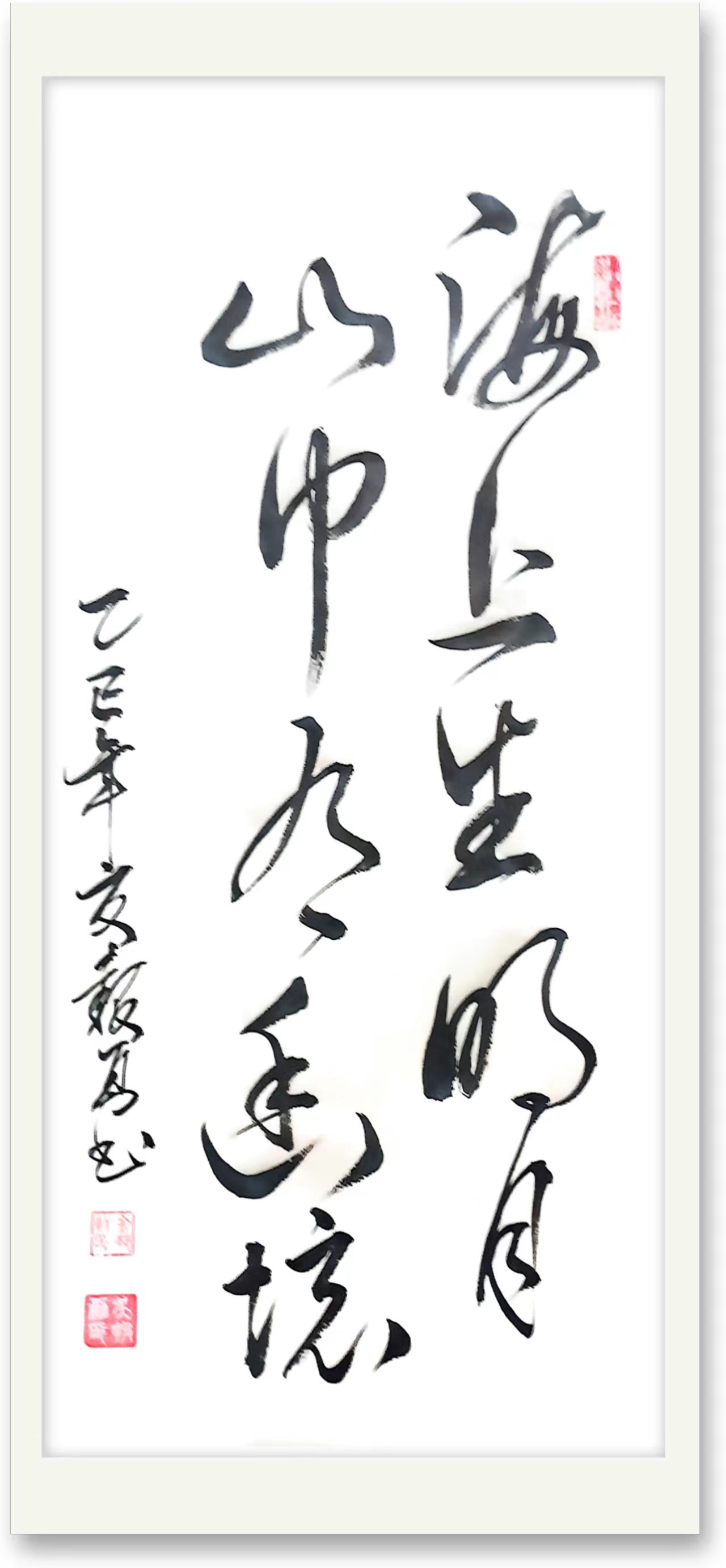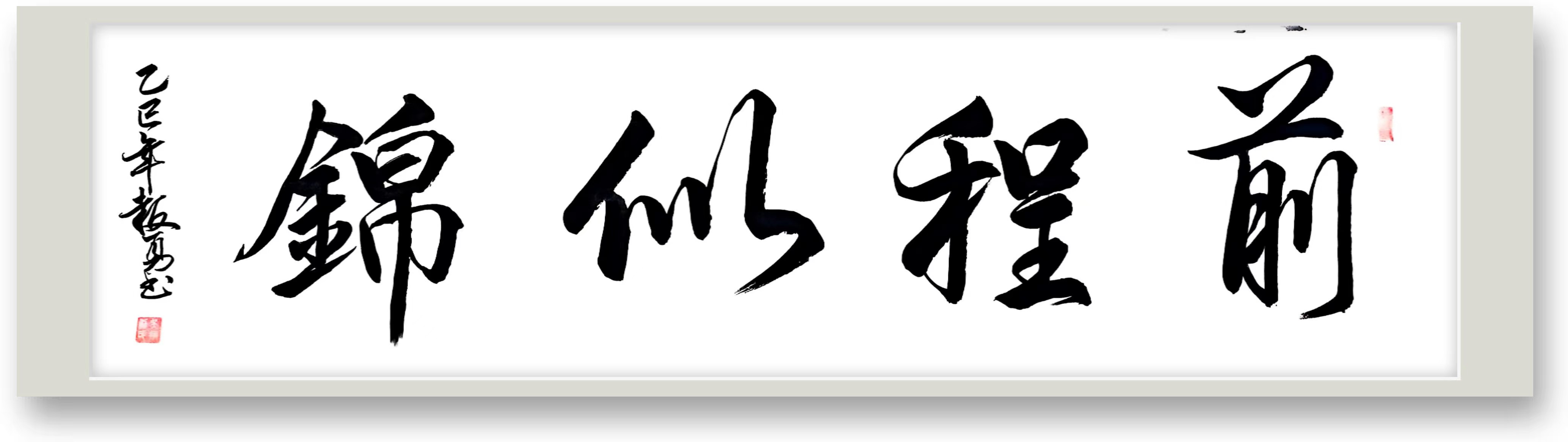 现代文人书法的一面镜子,又总是可以借古开今,紧扣时代脉搏,兼具尚美华贵的新气息,以令书法结构严谨,比例协调,形成了空灵厚重兼备的个性,笔酣墨妙,牵丝映带,走进他的书法体系体察传统书法的韵味,心享现代审美的要妙,恰是雅俗共赏的当代文人书法助力文化传承的猎猎旗帜,迎惠风和畅,写天朗气清!