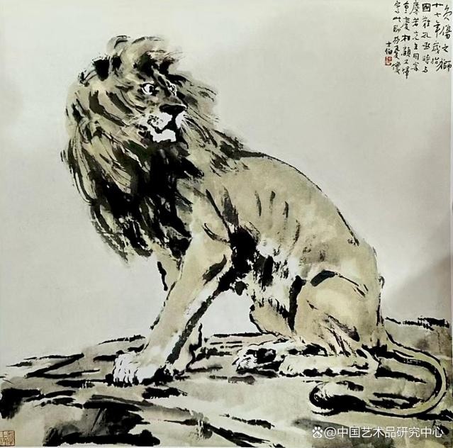 候士伯临帖画作《雄狮》