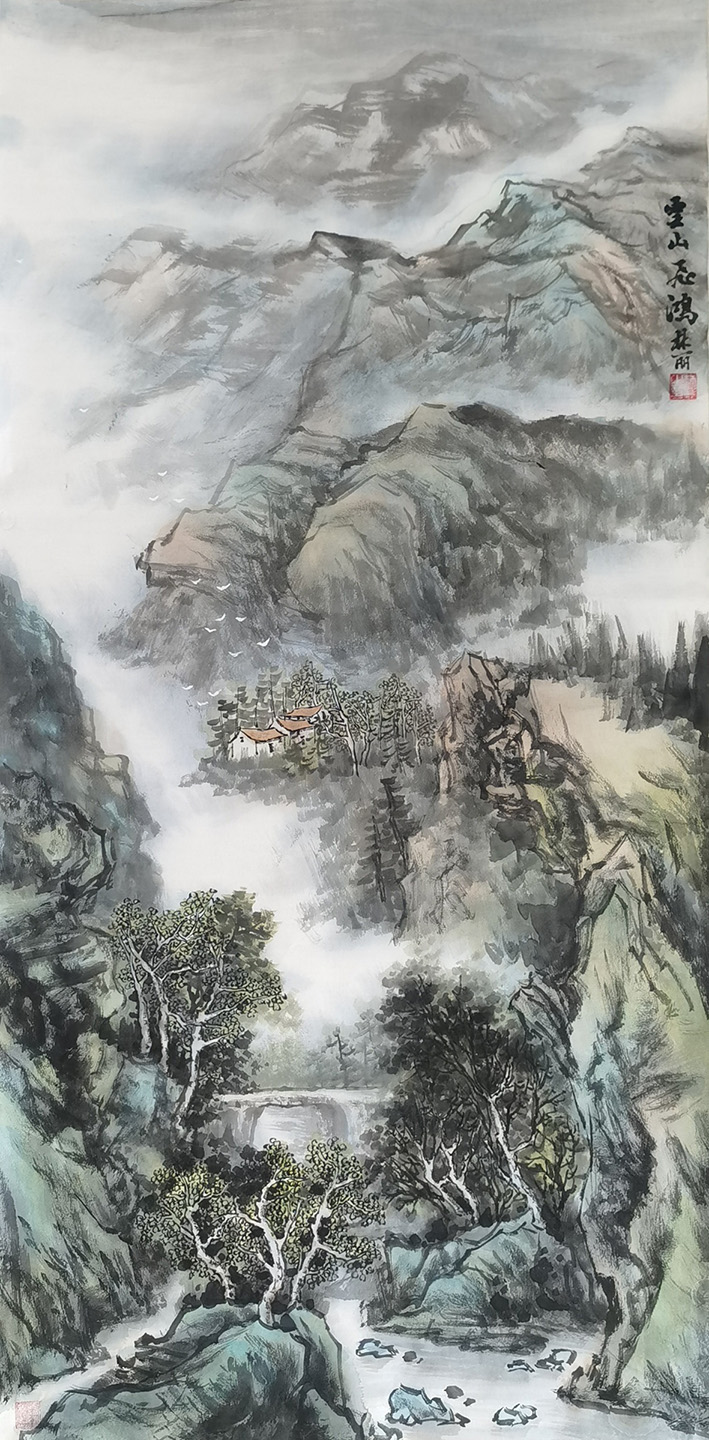 2023年11月 山水画《云山呈祥》小三尺 被连江树人托管周校长收藏。