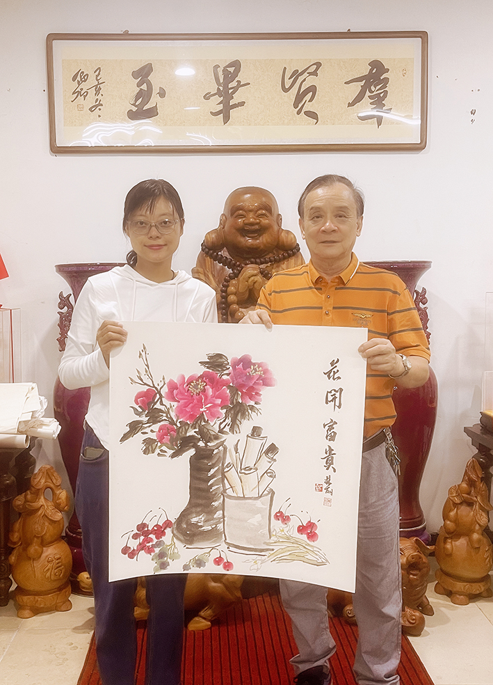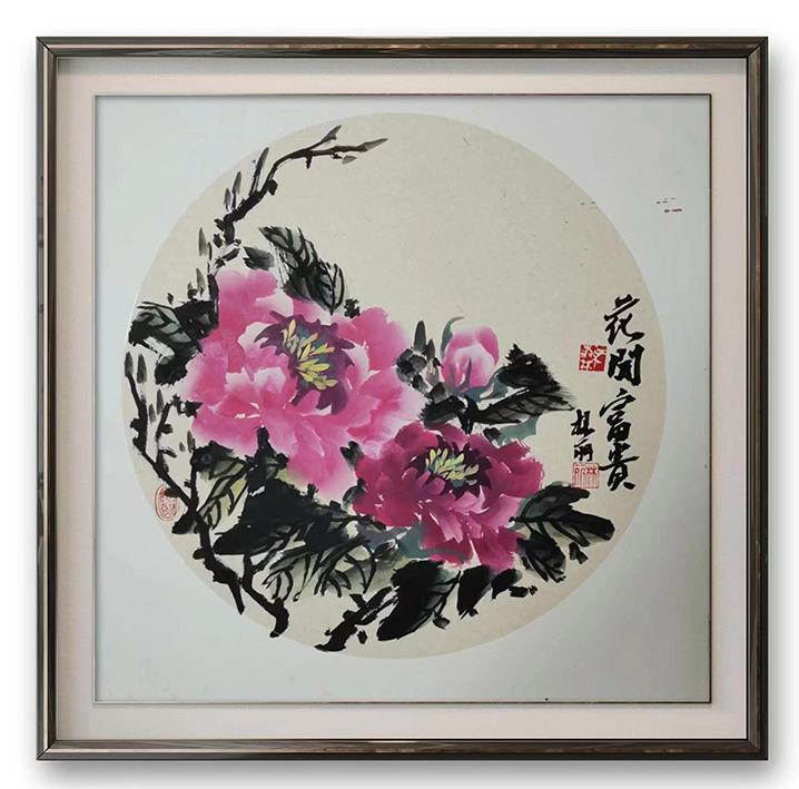 2023年9月 受邀参加福州吉祥书画院乔迁喜笔会,花鸟画《花开富贵》68*68cm被福建省委办公厅郑主任夫人收藏。