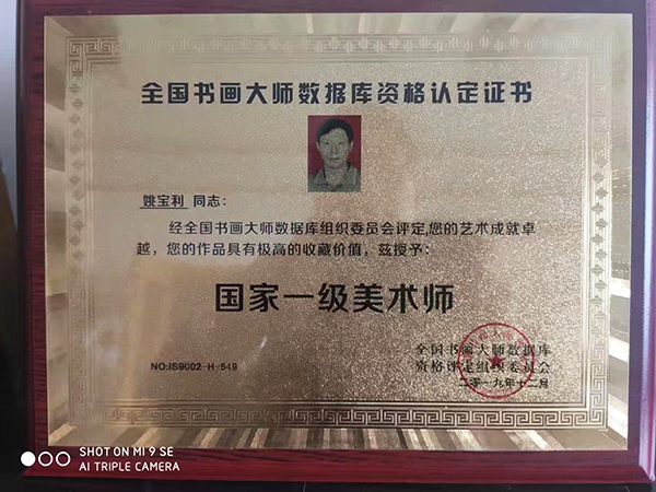 姚宝利,生于1957年12月,祖籍山东烟台莱阳市。现为美国书画艺术研究院商丘创作基地总监,美中文化交流协会中华书画院会员,美中书画院常务副院长和执行部副部长,香港国际艺术家协会会员,连云港市赣榆区文化促进会副主席,连云港秦山岛画院院执行院长,江苏宿迁市宿城区牵手助残协会名誉会长,2019华人书画艺术年度人物,国家一级美术师,中国刀画《油彩国画》家协会会员,河南省高级工艺美术师,湖南《三湘儿女》书画艺术研究院院长,湖南《三湘儿女》编辑部副总主编,《三湘儿女》华夏咨询网河南工作站主任,湖南《三湘儿女》刊物多次出版,并列入《中华姚氏名人风采录》出版发行。