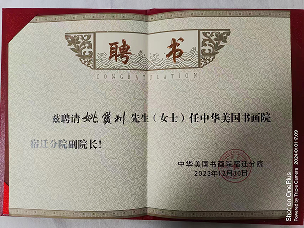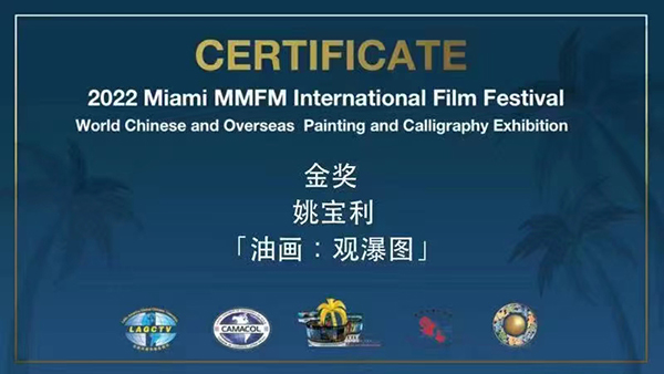 2022年1月荣获《美国2022迈阿密华语电视台春节晚会组委会》颁发的 书画类金奖;