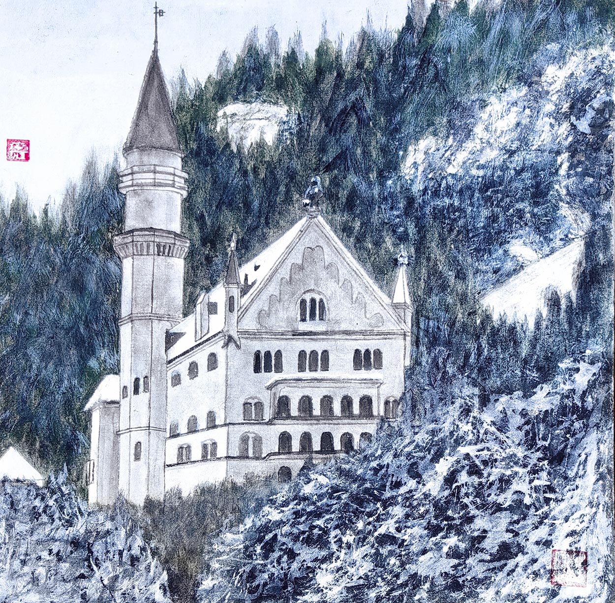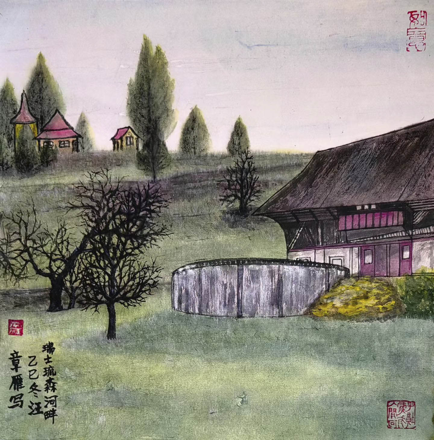 从生态关怀到人文温度,从跨文化对话到生活诗意,汪章雁的创作始终紧扣时代脉搏。他摒弃文人画的孤高与疏离,让水墨艺术回归生活本真。他的作品没有宏大叙事的刻意,也无技法炫耀的浮躁,而是以细腻入微的观察,融通中西方的艺术表达,在方寸之间搭建起世界与内心的桥梁,展显东方水墨艺术之美,让风景成为跨越地域的情感共鸣。他的风景写生水墨作品《傩仙镇》《阿尔卑斯山雪景》《雪原》《阿尔卑斯山屋》等在获国外国内艺术大赛中频频获奖。