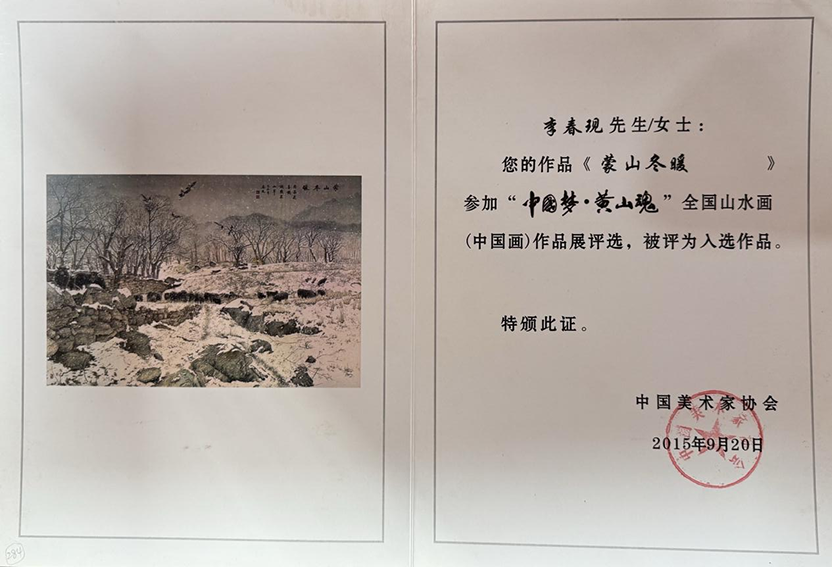 2015年 油画入选中国美术杂志社举办“三明金叶奖”中国书画大赛精品展(展地四川)。