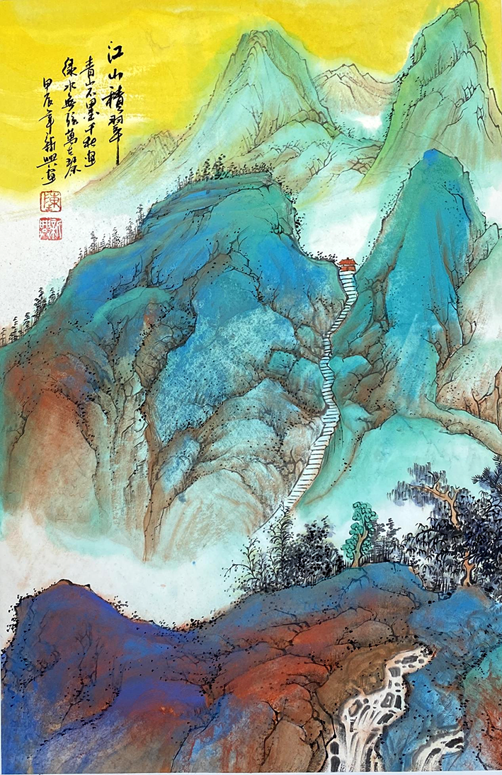 2022年 写意泼彩山水《江山胜景》70cmx45cm 中国国家博物馆
