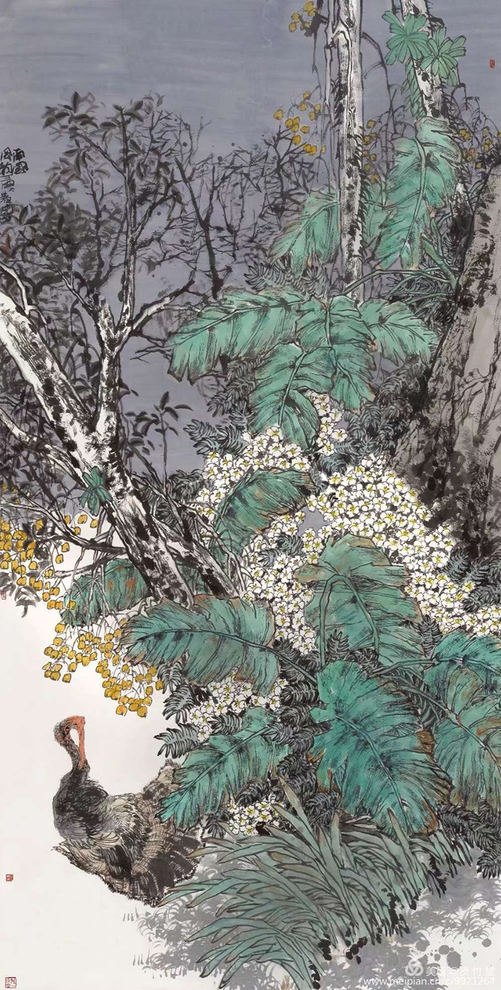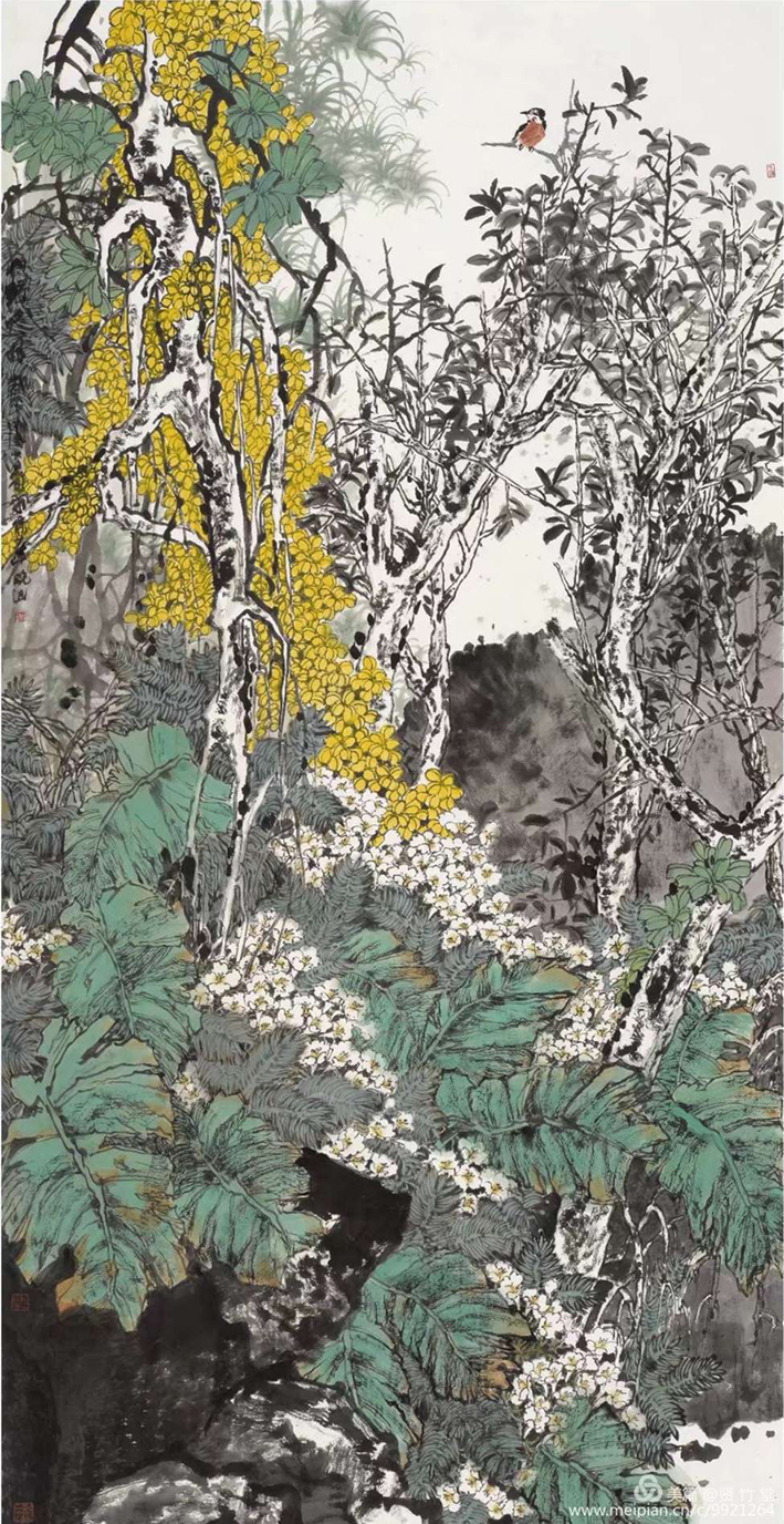 2021年“百花向阳”——全国花鸟画作品展 作品《松晚翠方深》 入选 (中国美协);