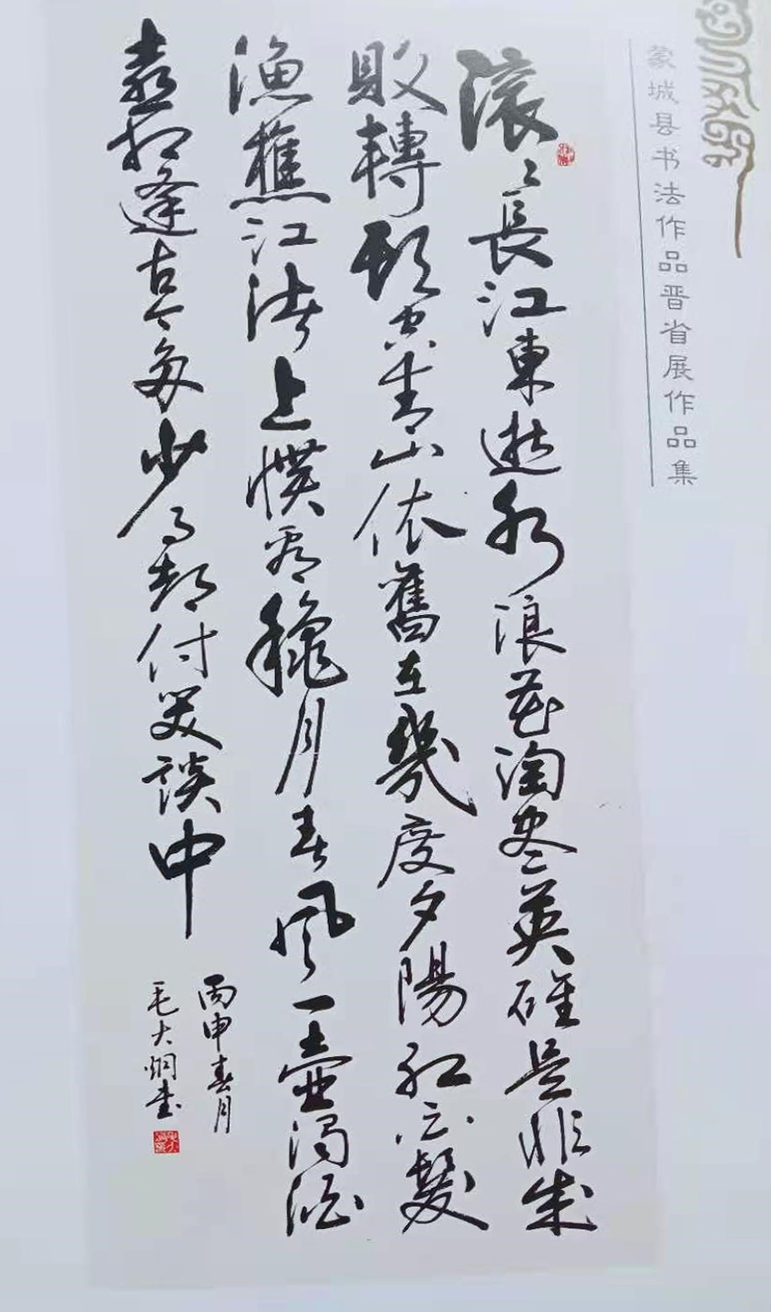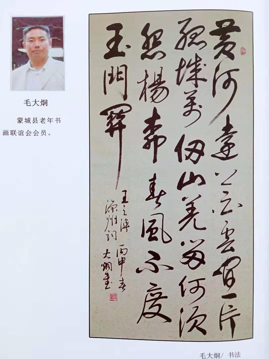 毛大炯老师的书法可谓是博采众长。他狩猎极广,真正做到了集诸家之长于一身。由于他多年来的勤学苦练、勤思善悟,逐渐形成了自己独特的书法艺术风格,达到了较高的艺术境界。崇法尚古而不泥,勤学善悟自融通!他的书法作品曾多次参加省市县以及全国书法大赛并获奖,参加的各级各类展出不计其数,结集出版作品达数十本,许多作品被许多名人政要所收藏。
