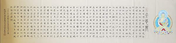 2021年12月,中昌鼎源(北京)拍卖有限公司书法专场秋拍,姚鹰厦 小楷《般若波罗蜜金刚经》尺寸1000×33cm估价RMB 350,000,雅昌拍卖记录编号为【Lot0321】。