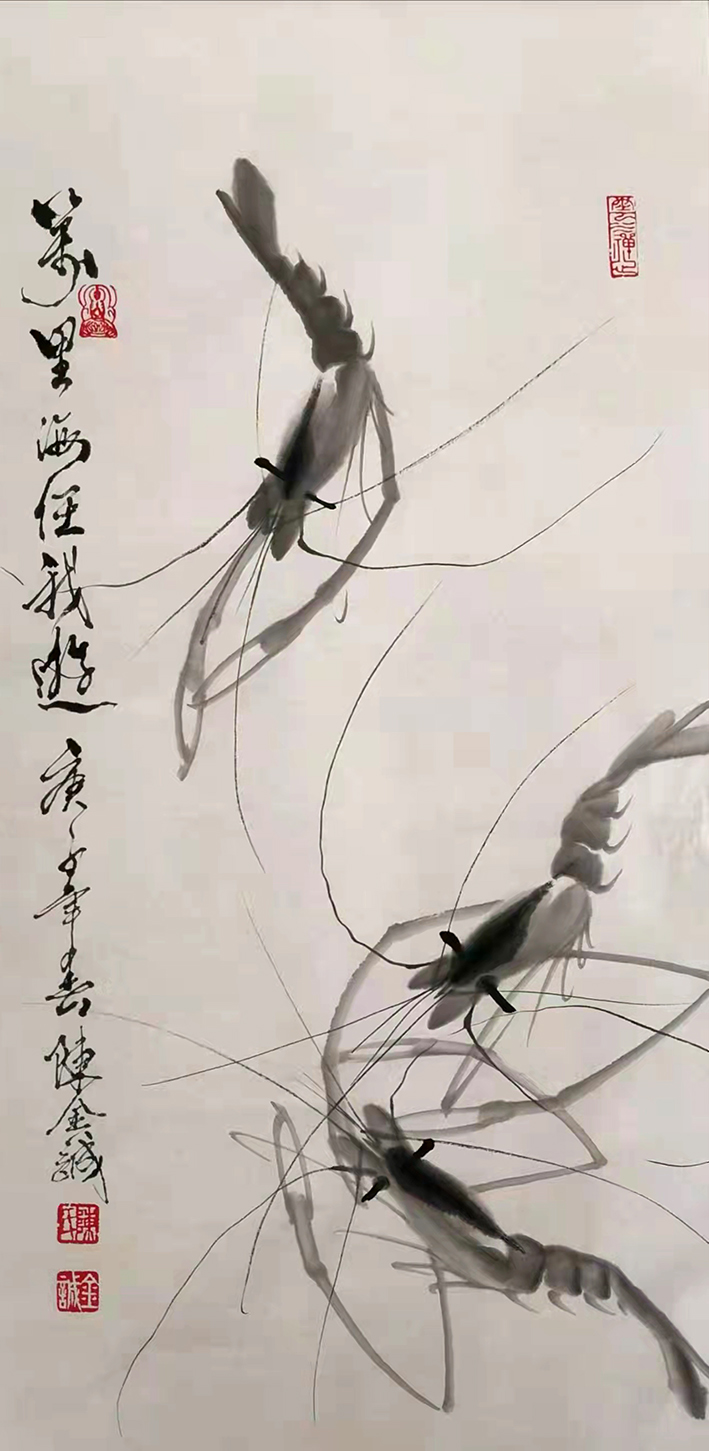陈宁,字金诚,男,1984年出生于安徽淮北,自幼深受外祖父艺术熏陶,擅长工笔虫草,写意兰花,水墨虾,收藏,篆刻。后拜访皖北江淮大写意名家,郑正,刘雪樵,等大家,虚心求教学习,画艺大增,逐渐形成自己的作品风格,代表作有,万里海天任我游,荣获全球书画艺术金象奖,表现了虾的灵动,游动形态,惟妙惟肖,神韵充盈,用淡墨执笔,绘成躯体,浸润之色,更显虾体晶莹剔透之感,以浓墨竖点为睛。横写为脑,落墨成金,笔到神出,刚柔并济,誉为皖北虾王。作品百虾图荣获民族杯金奖。