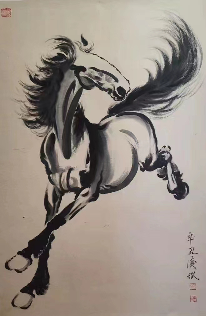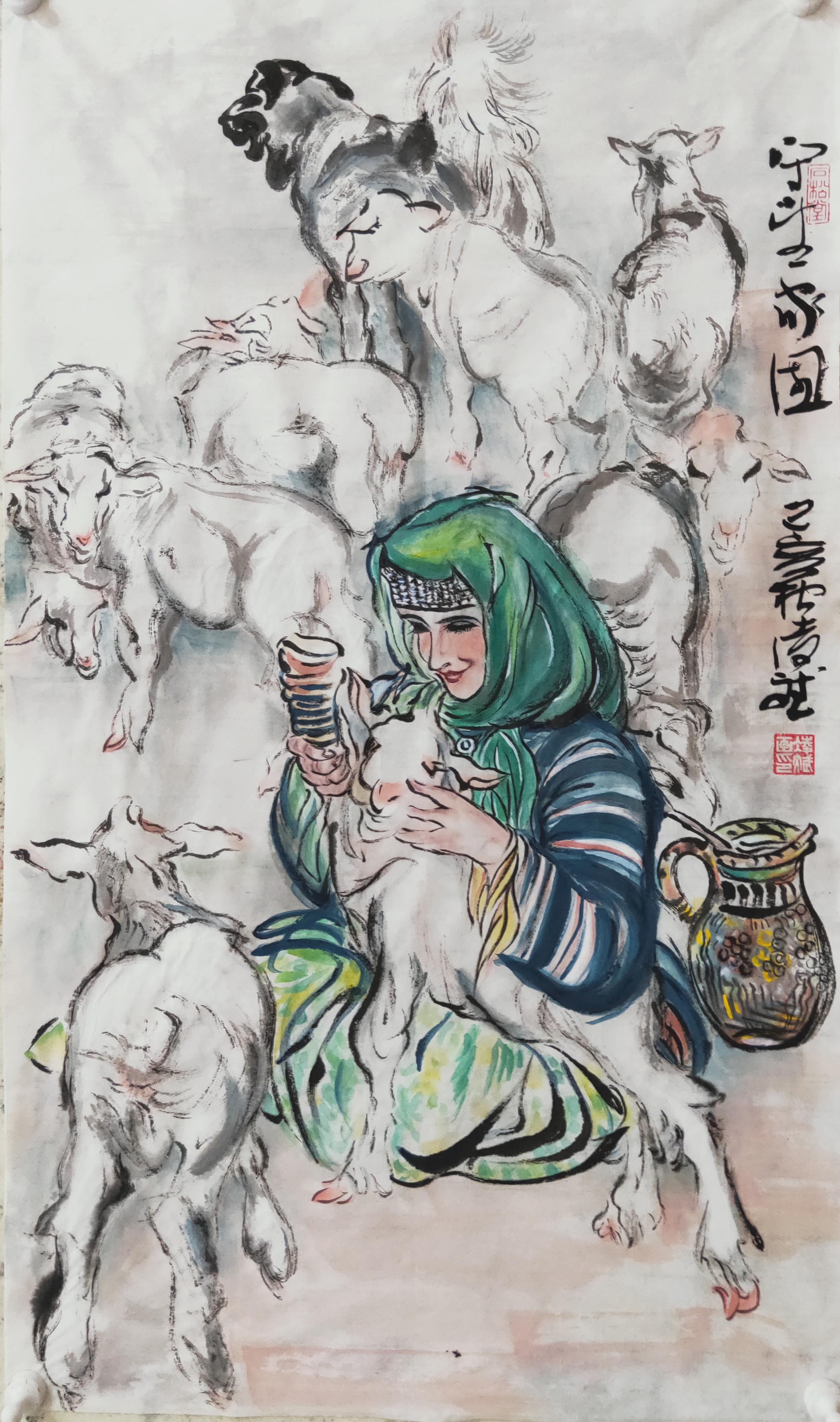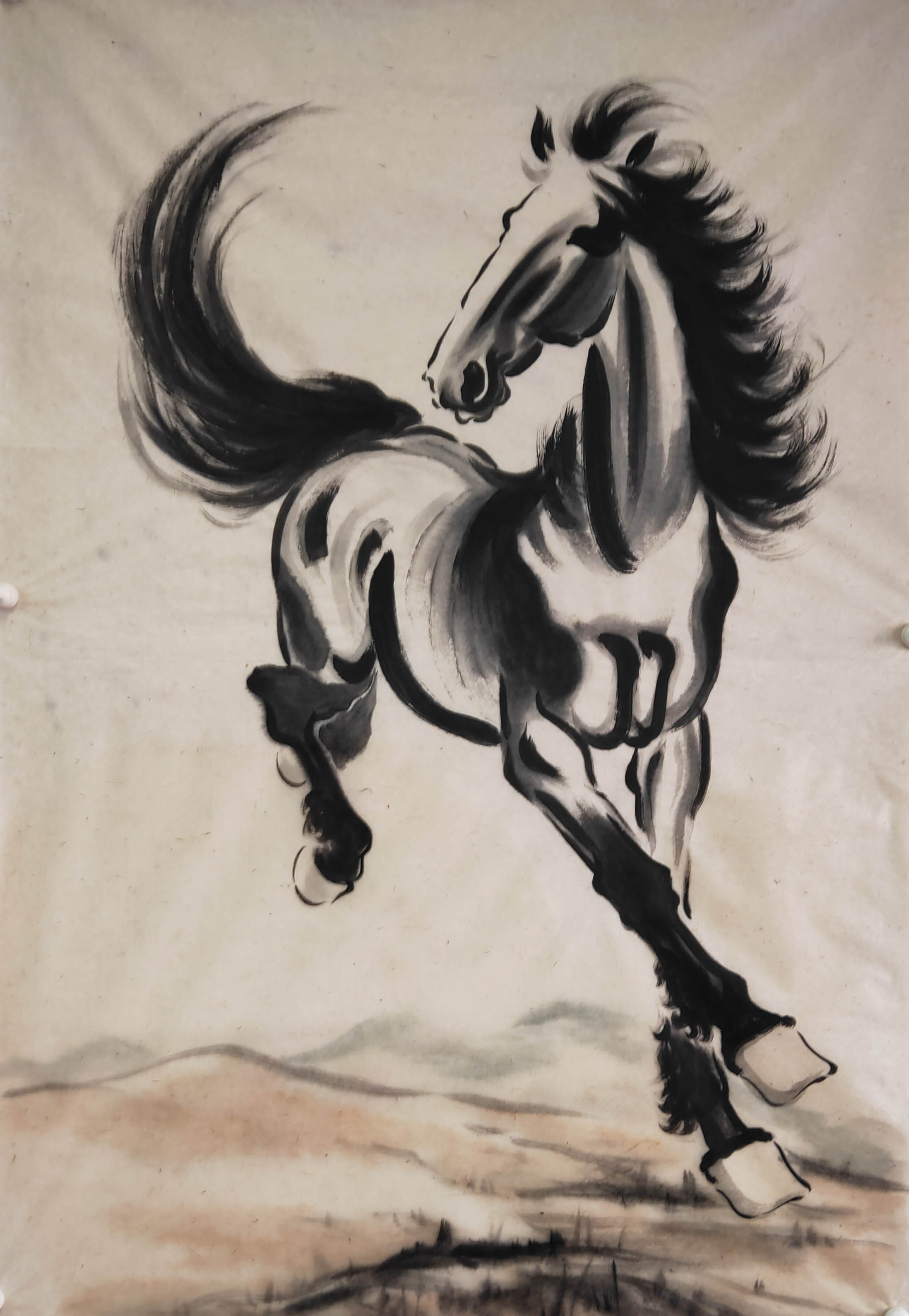 省古徽州歙县。自幼习画,以少数民族人物、动物、佛系人物画见长,尤其擅长画各种神态的马。