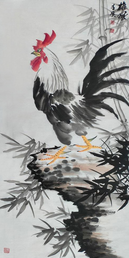 黄崇嶺先生性敦厚朴茂,少言语。自幼深受家庭国学文化侵染,美术科班学习绘画理论,使其达到一定高度,经过数十年实践创作,上下求索崇尚传统笔墨,砚田耕耘不辍。喜为翱翔云天的苍鹰、昂首高歌的雄鸡写照;爱为雍荣华贵的牡丹、清风高标的梅兰竹菊赋彩。更乐山好水陶醉于林泉野径之间,师法自然抒写心中之境。追求用笔苍劲老辣用墨变化万千,探索肌理运用以丰富绘画意趣。作品力求气韵生动、形神兼备、笔墨酣畅、雅俗共赏,逐渐形成自已的审美志趣和绘画语言。早年学习宋元诸家,画风疏秀明洁,用笔纵肆,墨法淋漓,格法多变;花鸟画潇洒隽朗,天真烂漫,清气袭人。英气勃发,咄咄逼人。追求形神生动,他的鹰有雄视苍茫大地之气慨。把鹰与松画在一起,两者气质相合,松本身也具有一种挺拔不凋、不惧风雨的品质。