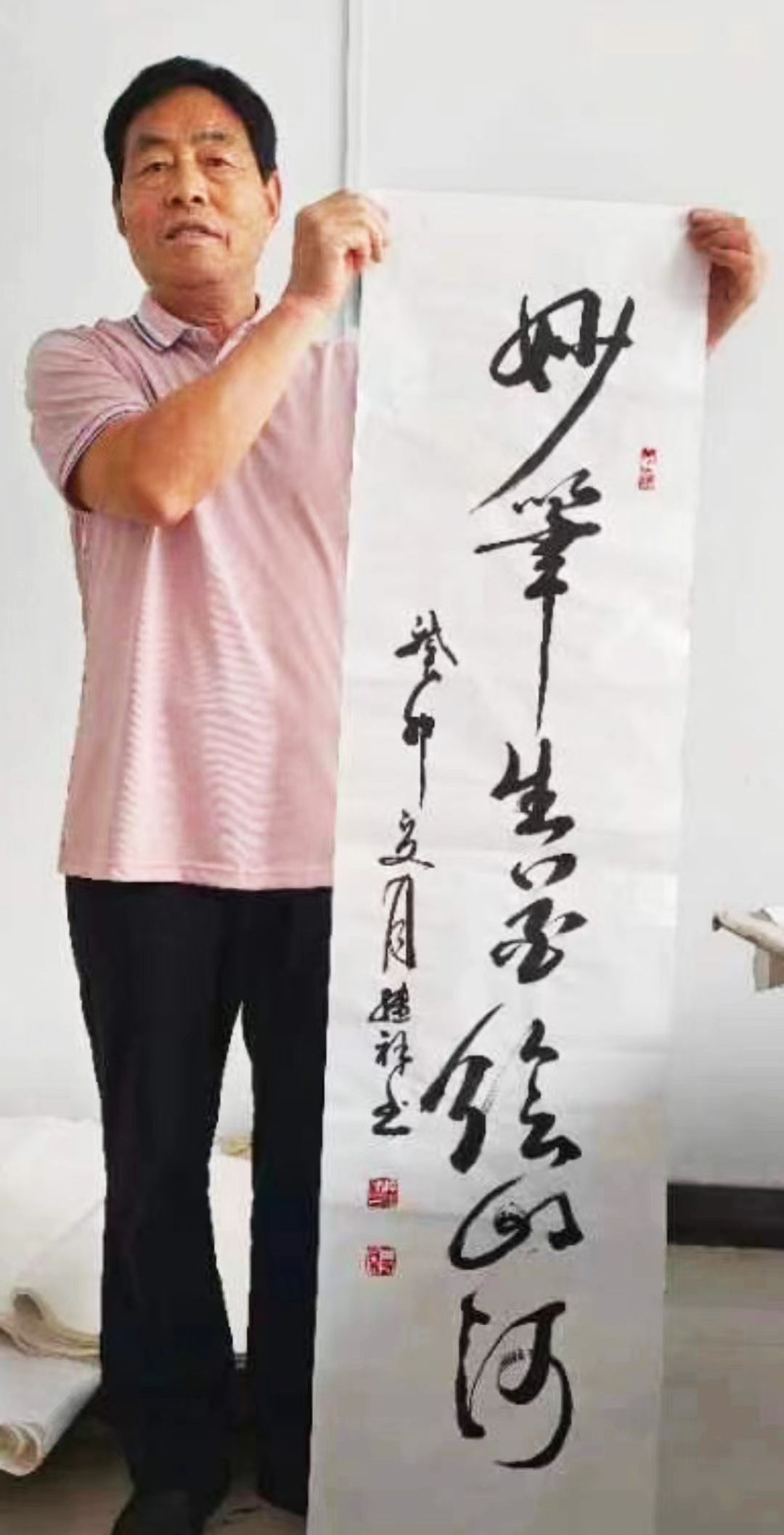 陆继祥,退休教师,1956年出生于中国书画之乡安徽萧县,成长于龙城凤山脚下,自幼喜爱书法,初学唐楷,尔后受到尉天池,萧龙士,冯雨邨习等书法大家熏陶,研习圣教序,学习行楷,博取名家之精粹,颉取之精华,逐步形成篆隶楷行的个人风格,以行楷见长。陆继祥先生,日日临池,笔耕不辍数十载,终有所成。专注榜书、行楷,在书画研究创作生涯中逐渐形成自己独特的风格,字迹风神洒落入木三分,章法疏放妍妙天资神纵,作品浑然大气、苍劲有力、酒脱飘逸。