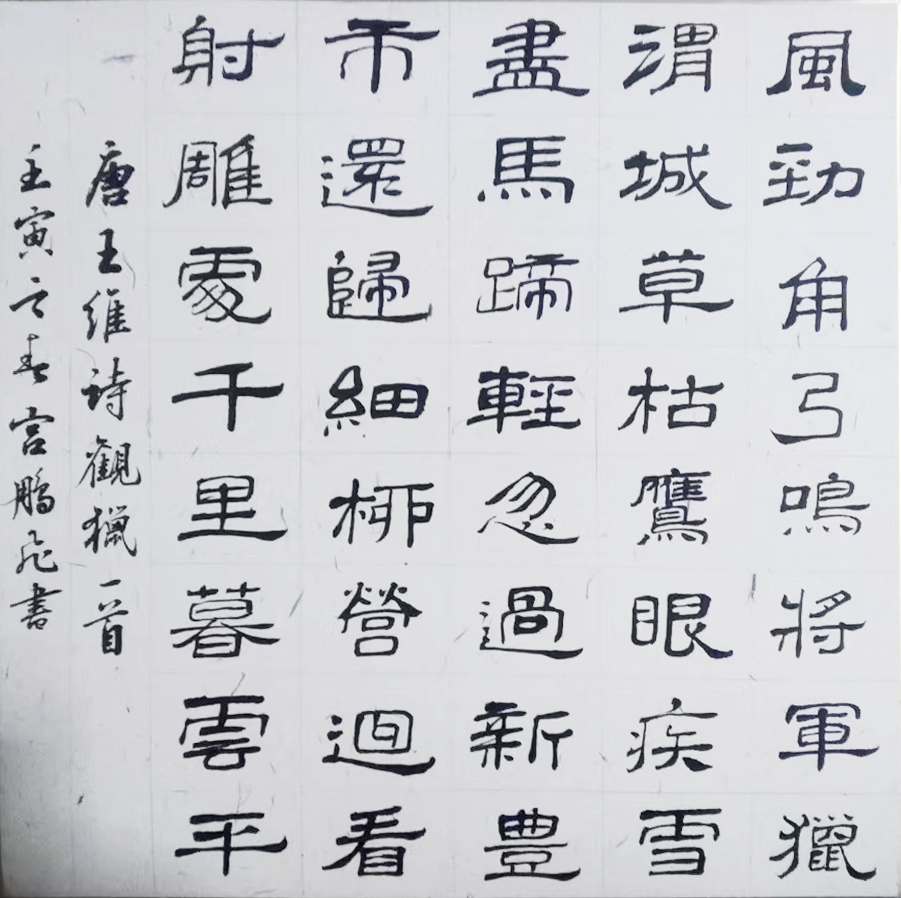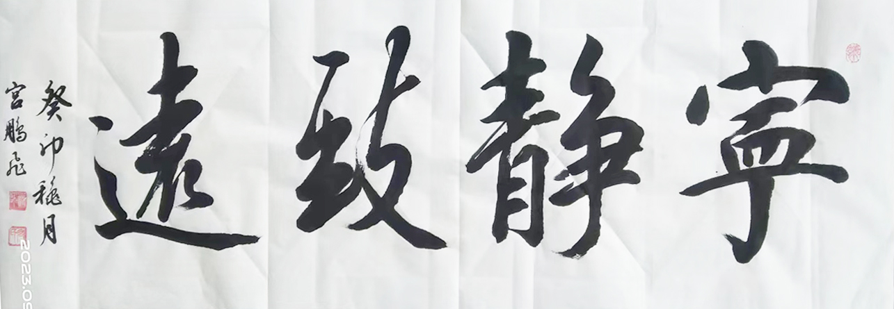 宫鹏飞,祖籍安徽省太和县,自幼受家庭薰陶,酷爱书法艺术。毕业于广州艺术学院,进修于中国书法院高级研修班。数十羊勤学苦练、笔耕不辍,作品内涵神韵,书法稳健雄强、秀美温润、古朴高雅。书写时讲究师古而不泥古,取古法而求变,不足一格、自成一家。