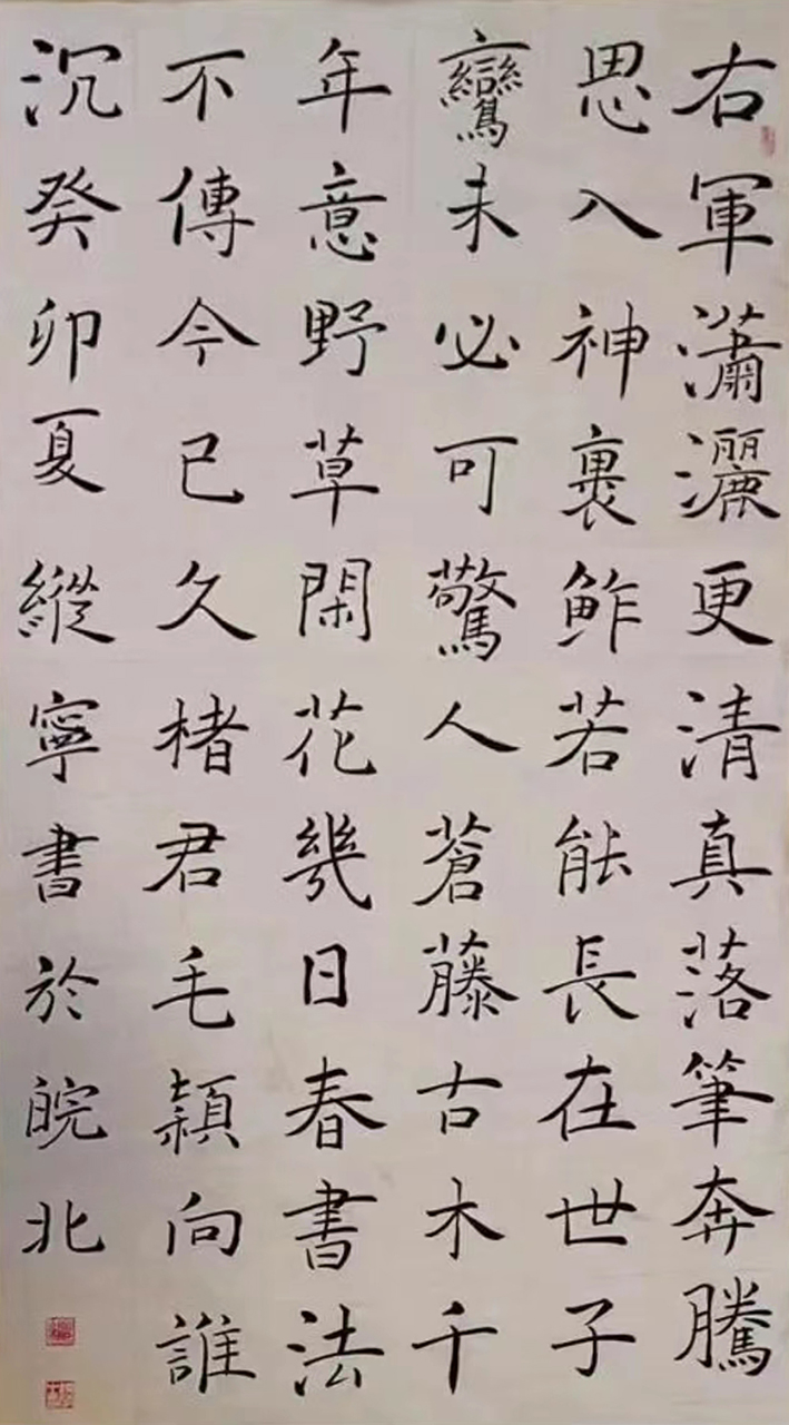 书法主要以颜体,褚体入手,书法俊秀,飘逸有,洒脱,流畅,线条美,能书写隶,楷,行三体,纵宁先生作品荣获第二届“新征程”全国诗书画印联赛银奖,第二届右军杯全国诗书画作品大赛二等奖 ,第五届“翰墨盛世”全国大赛铜奖,第四届“海峡情缘·鸿儒杯”全国书画大赛优秀奖,百花齐放杯全国大赛优秀奖,第二届华夏兰亭奖全国书画名家大赛优秀奖,作品入展庆祝中华人民共和国成立74周年淮北和安庆书法联展,书法作品被中国澳门邮政收藏并发行邮票。纵宁先生作品被网易,新浪,腾讯,搜狐,凤凰网, 中国书画名家等主流媒体宣传报道,安徽将军亿酒业有限公司,安徽九华山酒业 有限公司,山东上好酒道有限公司,浙江杭州市满潭晴山文化创意有限公司,安徽天织市政有限公司,安徽佳伟活性碳有限公司,淮北顶香餐饮有限公司,淮北东晟装饰有限公司,合肥寿春印刷有限责任公司,淮北大禹防水有限公司 ,浙江摩登新型材料公司,江苏省苏州永慧彬新材料科技有限公司,国家级酿酒师安徽十大酿酒大师王振环先生,浙江大学动物科学学院博士后赖雪霜女士多次收藏。
