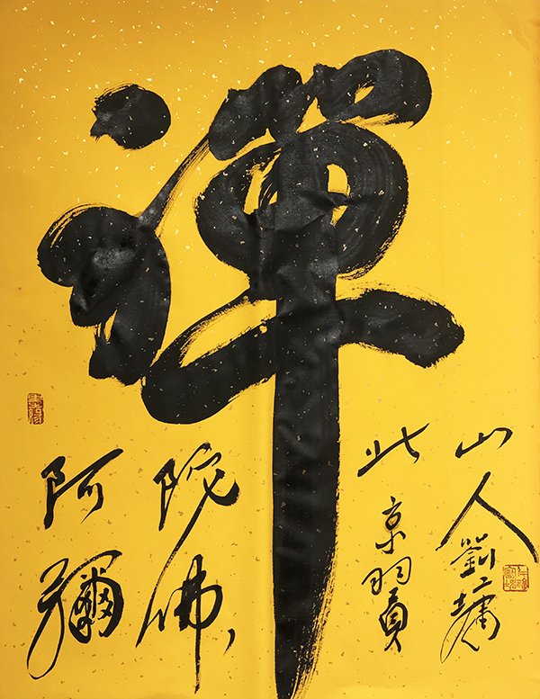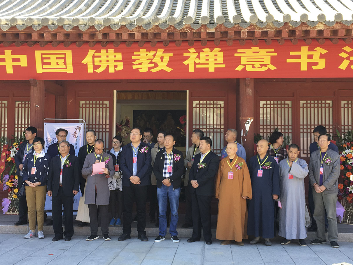 刘墉与中国佛教圣地山西五台山殊像寺参加中国佛教禅意书画展和殊像寺住持释果祥法师合影