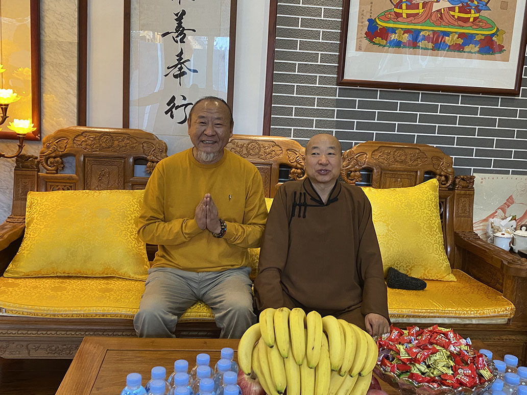 刘墉与山西省佛教圣地五台山殊像寺住持释果祥法师一起