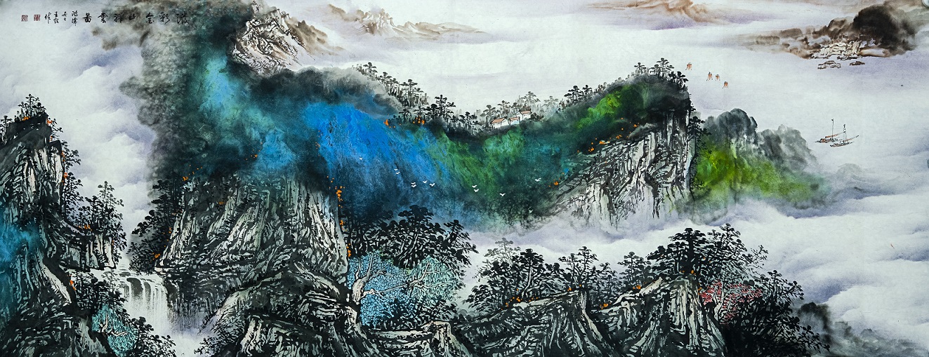 王超的国画气韵生动,其山水画风格来源于两个文脉:第一是立基于师法造化的写生,近三十年来,无论时风如何变迁,王超都没有离开深入自然山川写生发展自己画风的道路。