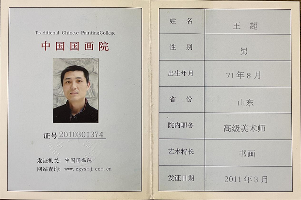 王超,字逸之,别署鸿儒居士。著名书画家,荣宝斋签约画家,国礼艺术家,山东省书法家协会会员,影响中国的十大艺术新闻人物 ,其对突破传统国画的文化壁垒有着杰出贡献。1971年出生,家学深厚,自幼跟随其父学习中国画及书法,2011年当选京华兰亭书画院名誉院长,2013年当选世界文艺家联合会感动世界年度人物。王超科班出身毕业于北京联合大学绘画专业,中国美术研究院艺术委员会委员,世界文艺家联合会终身理事,山东工艺美术学院客座教授。潍水画院院长。权威机构书画艺术家资格认证评定的艺术资格为著名国画家。