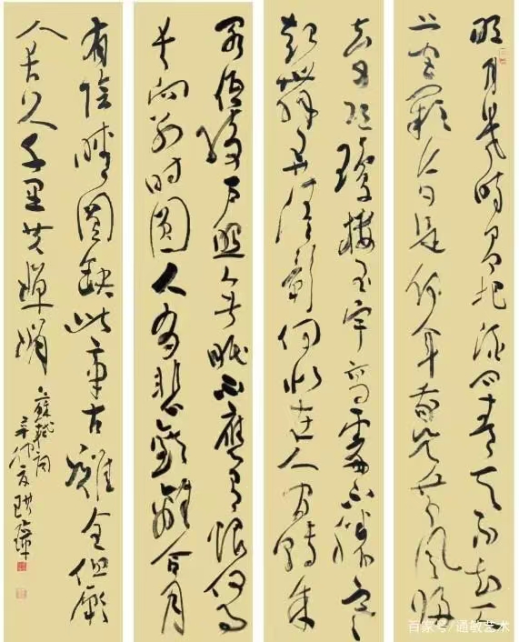 站在王琪璋的草书作品前,仿佛进入了一片澄明之地,能望见妙曼的景致,听到梵音在耳旁回响。王琪璋的书法之作,能让人感受到画境之美,更能让人享受禅境之静。单看一个个字,也会感到每个字都有画意,姿态横生。
