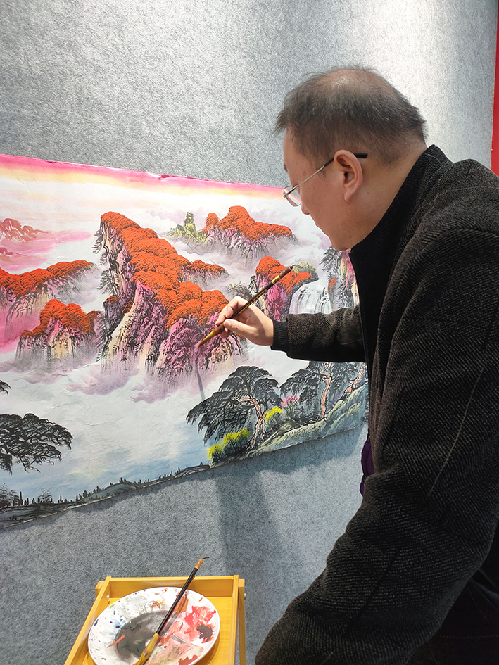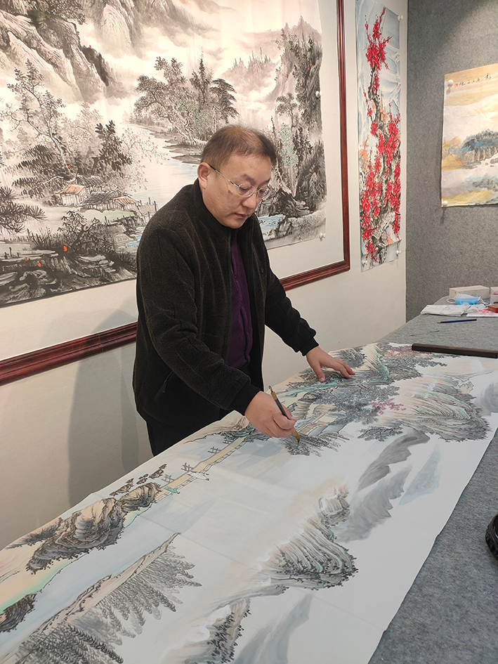 刘伟的山水画饱含了他对山川河流的热爱和赞美,无论是从绘画的表面形式上还是从画面的气韵中都可以看出他对山水画的这种崇高之情。其次,刘伟能抓住客观事物的重点,他把大自然这种心灵表达出来,真正做到了人画合一,体现出了刘伟崇高的人格。