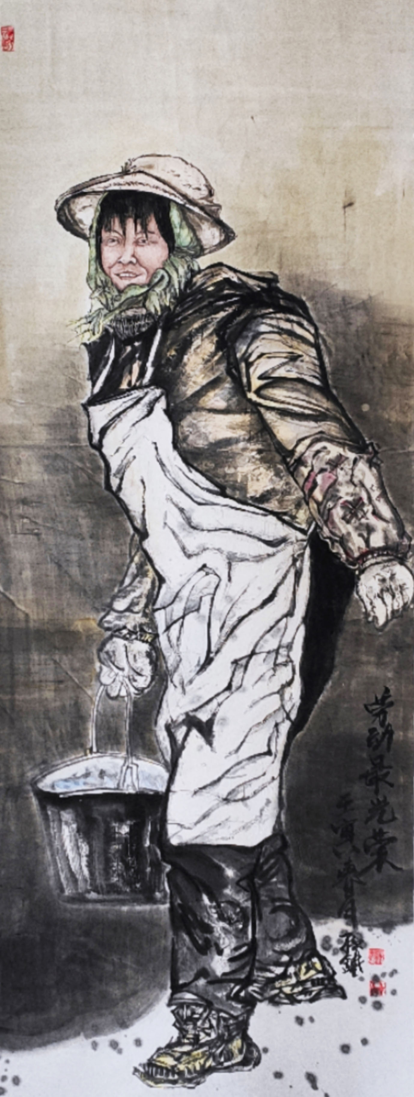 二十年居于古都西安,承泽汉唐雄风,笔下人物画沧桑老辣传神!后拜黄土画派创始人刘文西先生为师,深得其传!被刘老誉为黄土画派中间力量!业内雅称(铁画笔)!最擅西部风情人物画!画风劲利,廖廖数笔把人物内心喜怒哀乐呈现的淋漓尽致!称其(黄土风情第一笔)