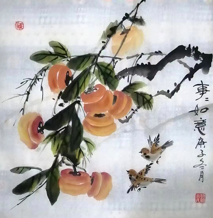 先生的写意花鸟作品画风多变,线条丰富飘逸,设色大胆娴熟。立意高古,构图秀逸传神,以独有的笔墨语言和飘逸自如的意趣释然,蕴含诠释着生命之美和韵律之美。深受当代藏家追捧。