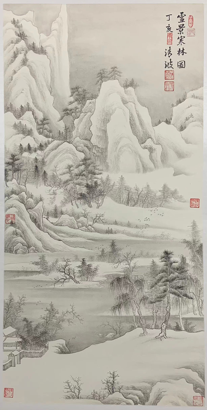 清波在美院深造期间潜心研学南宋院体山水画,开宗立派,开创了别具一格,诗书画意的墨色山水,苏轼曾经说过“平淡乃绚烂之极也”《论语》中也有:“绘事后素”的美学观点,中国传统山水画理论中更是讲:“水墨至上,山水为大”清波是墨色山水创始人,南宋院体画传承人,成为当代墨色山水领军人物,古有王维以诗入画,今看清波砚田山河。