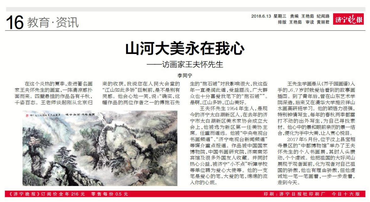 2018年《济宁晚报》教育资讯栏目对王夫怀先生进行专题报道