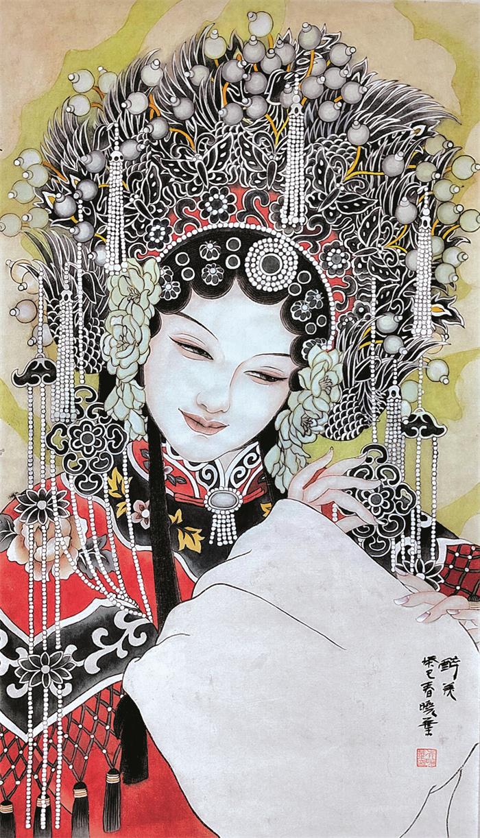 柳晓叶是中国京剧名票,也是中国京剧重彩画的开创者